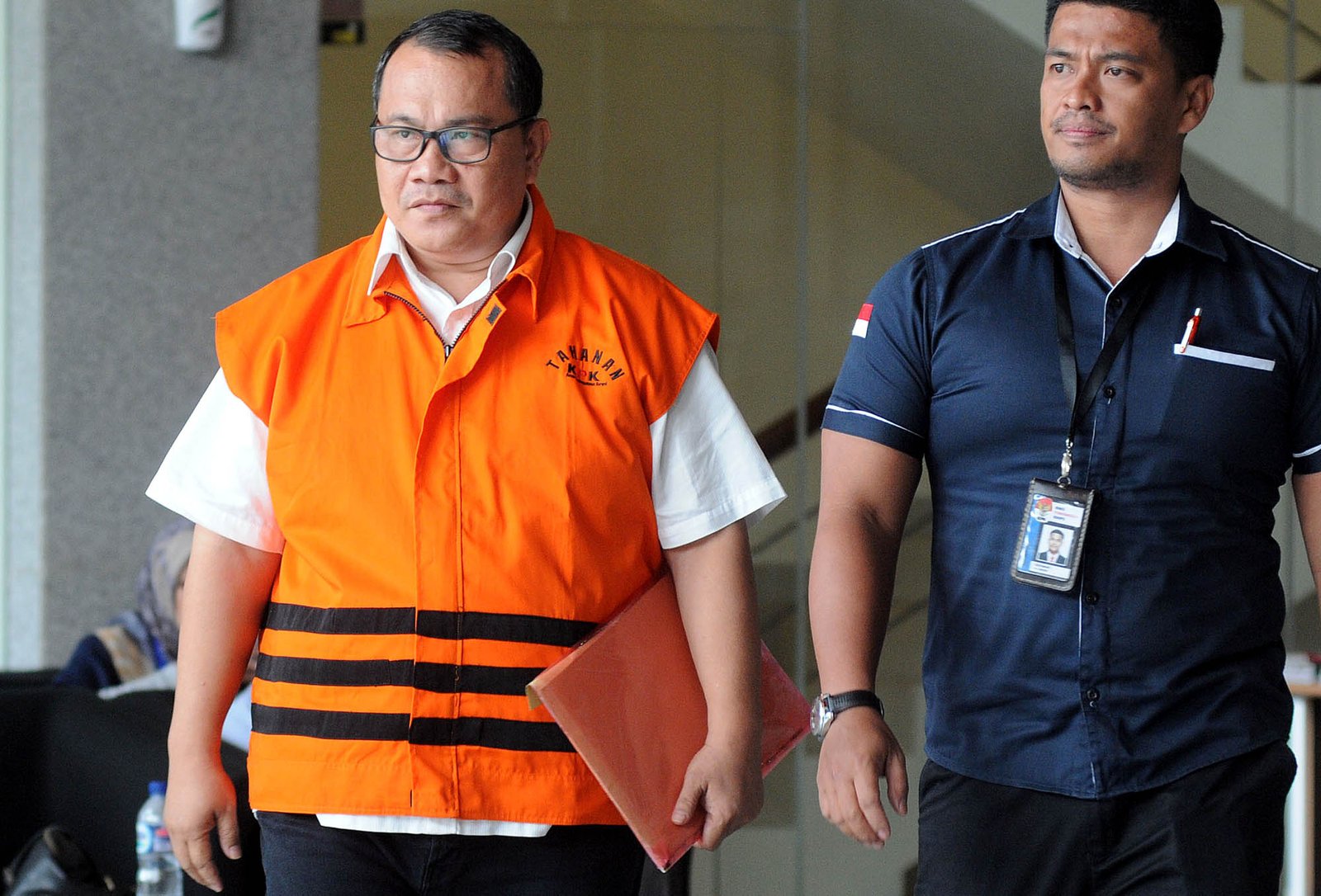 Anggota DPRD Sumatera Utara Analisman Zalukhu usai menjalani pemeriksaan penyidik Komisi Pemberantasan Korupsi (KPK) di Kuningan, Jakarta Selatan, Kamis (11/10/18). Analisman Zalukhu diperiksa sebagai tersangka terkait kasus suap persetujuan Laporan Pertanggungjawaban APBD 2012 dan Pengesahan Perubahan APBD 2013, 2014 dan 2015 oleh mantan Gubernur Sumatera Utara Gatot Pujo Nugroho.(Bisnis Jakarta/ADE)
