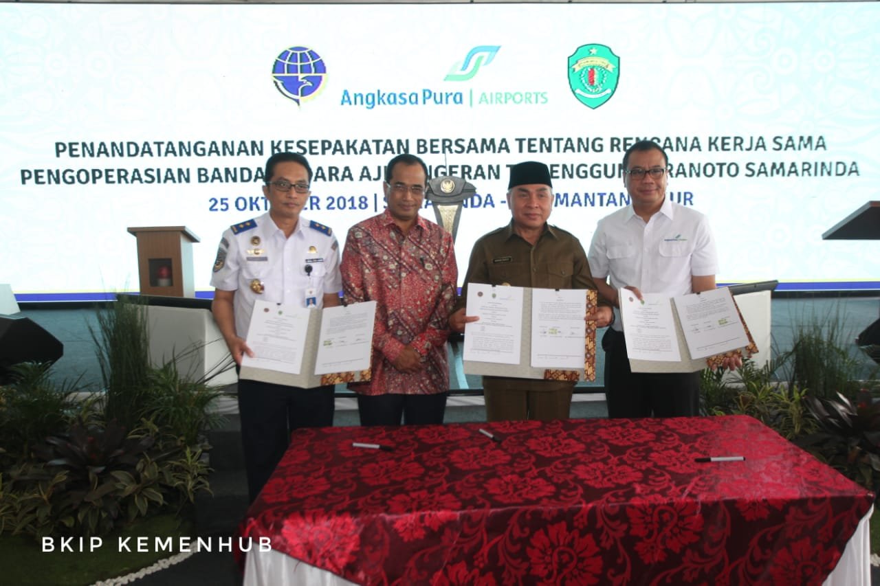 Bersamaan dengan acara peresmian Bandara Aji Pangeran Tumenggung (APT) Pranoto, Samarinda, Kaltim, Kamis (25/10), dilakukan juga penandatanganan kesepakatan bersama antara Pemerintah Provinsi Kalimantan Timur, Direktorat Jenderal Perhubungan Udara Kementerian Perhubungan, dan PT Angkasa Pura I tentang rencana kerja sama pengoperasian bandara ini. Nantinya Bandara yang berada di kota tepian Sungai Mahakam ini akan dikelola PT Angkasa Pura I. "Dengan kapasitas runway yang cukup 2.250 meter kami pikir bandara ini bisa berfungsi lebih maksimal oleh karenanya kita akan menugaskan PT Angkasa Pura I untuk selaku pengelola nanti diikuti dengan kerjasama pengelolaan,” kata Menhub Budi Karya Sumadi yang turut menyaksikan acara penandatanganan kesepakatan tersebut.