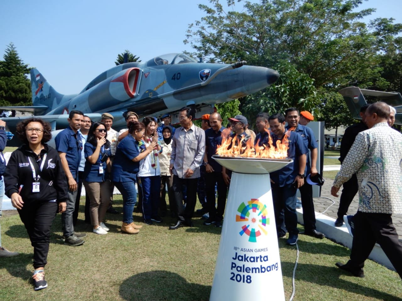 Api Asian Games 2018 berasal dari api abadi yang diambil dari New Delhi, India, sebagai tempat kelahiran Asian Games. Api diterbangkan menggunakan pesawat Boeing 737 milik TNI Angkatan Udara. Rombongan pembawa api Asian Games mendarat di Bandara Adi Sutjipto, Yogyakarta, Selasa pagi, sekitar pukul 08.00 WIB.  Susi Susanti sebagai Duta Asian Games 2018, sekaligus legenda bulu tangkis Indonesia, menyatakan kegembiraannya karena perjalanan ini berlangsung dengan lancar. “Saya senang bisa membawa api Asian Games 2018 ini. Hal ini menjadi pengalaman luar biasa. Sejauh ini berjalan cukup lancar, meski sempat terkendala regulasi di bandara India. Namun, semua selesai dengan baik. Saya tentu berharap, api Asian Games ini menjadi simbol persahabatan Indonesia dan India,” kata Susi Susanti.
