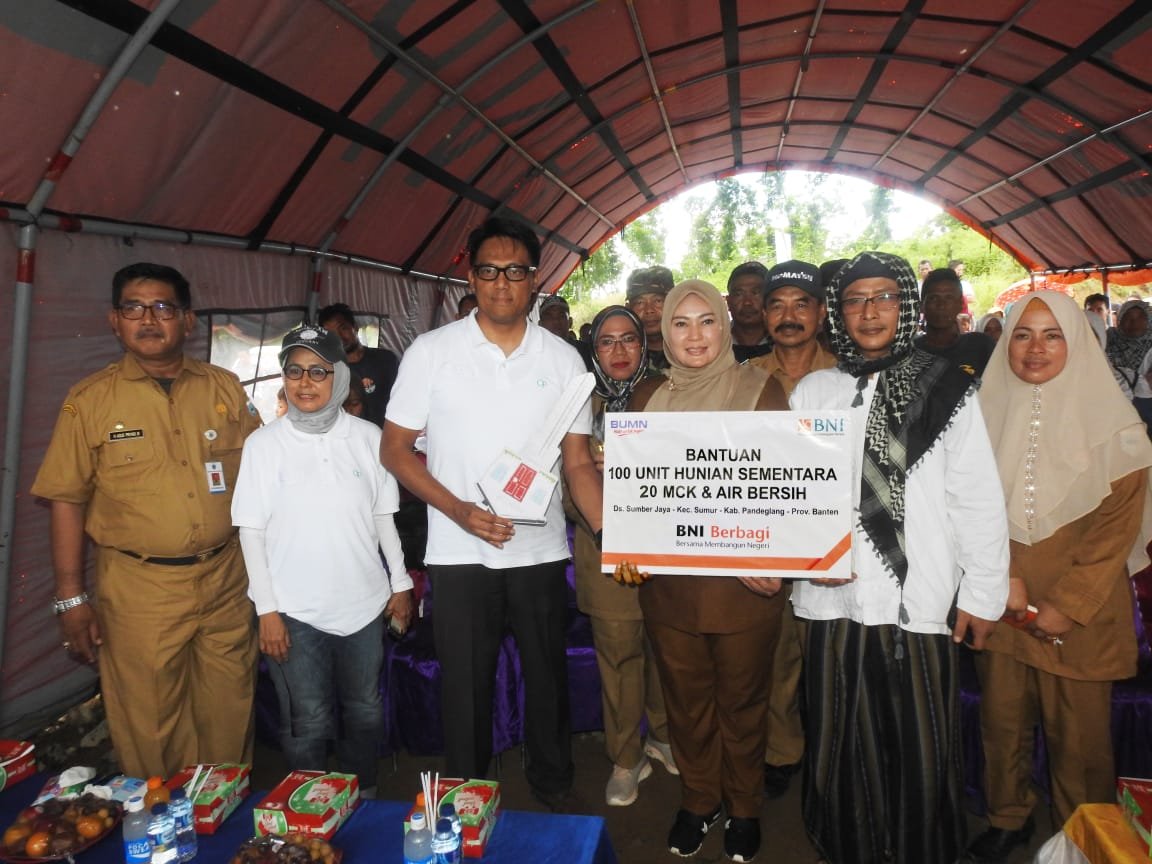 Seluruh Huntara yang dibangun di Pandeglang ini dikerjakan sebagai bagian dari Program BUMN Hadir Untuk Negeri yang juga dilakukan oleh beberapa bank anggota Himpunan Bank-bank Milik Negara (Himbara). Hadir pada peresmian 100 Huntara di Kecamatan Sumur tersebut Bupati Pandeglang Irna Narulita dan CEO BNI Wilayah Jakarta BSD Henry Panjaitan.