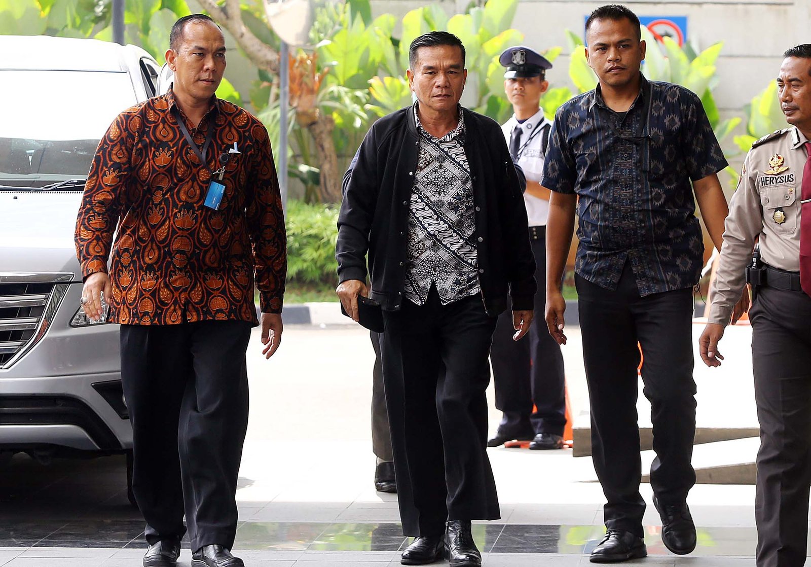 Bupati Bengkulu Selatan Dirwan Mahmud digiring petugas saat tiba untuk menjalani pemeriksaan di gedung Komisi Pemberantasan Korupsi (KPK) di Kuningan, Jakarta Selatan, Rabu (16/5/18). KPK melakukan Operasi Tangkap Tangan (OTT) terhadap Bupati Bengkulu Selatan Dirwan Mahmud di kediamannya. Dari OTT tersebut turut terjaring istri dari Dirwan Mahmud, Heni Dirwan, wiraswasta JU, dan WA dengan barang bukti uang sekitar Rp100 juta.(Bisnis Jakarta/ADE)