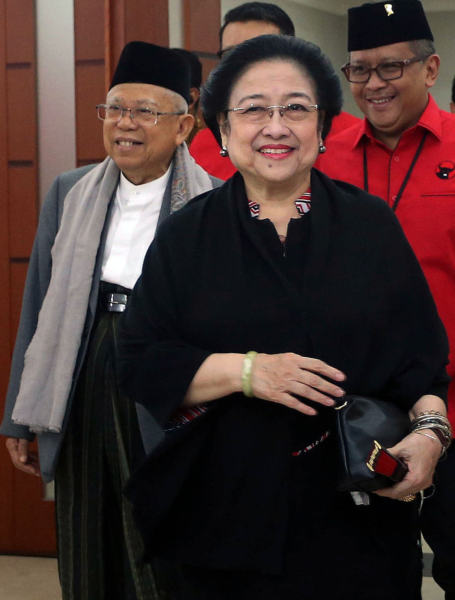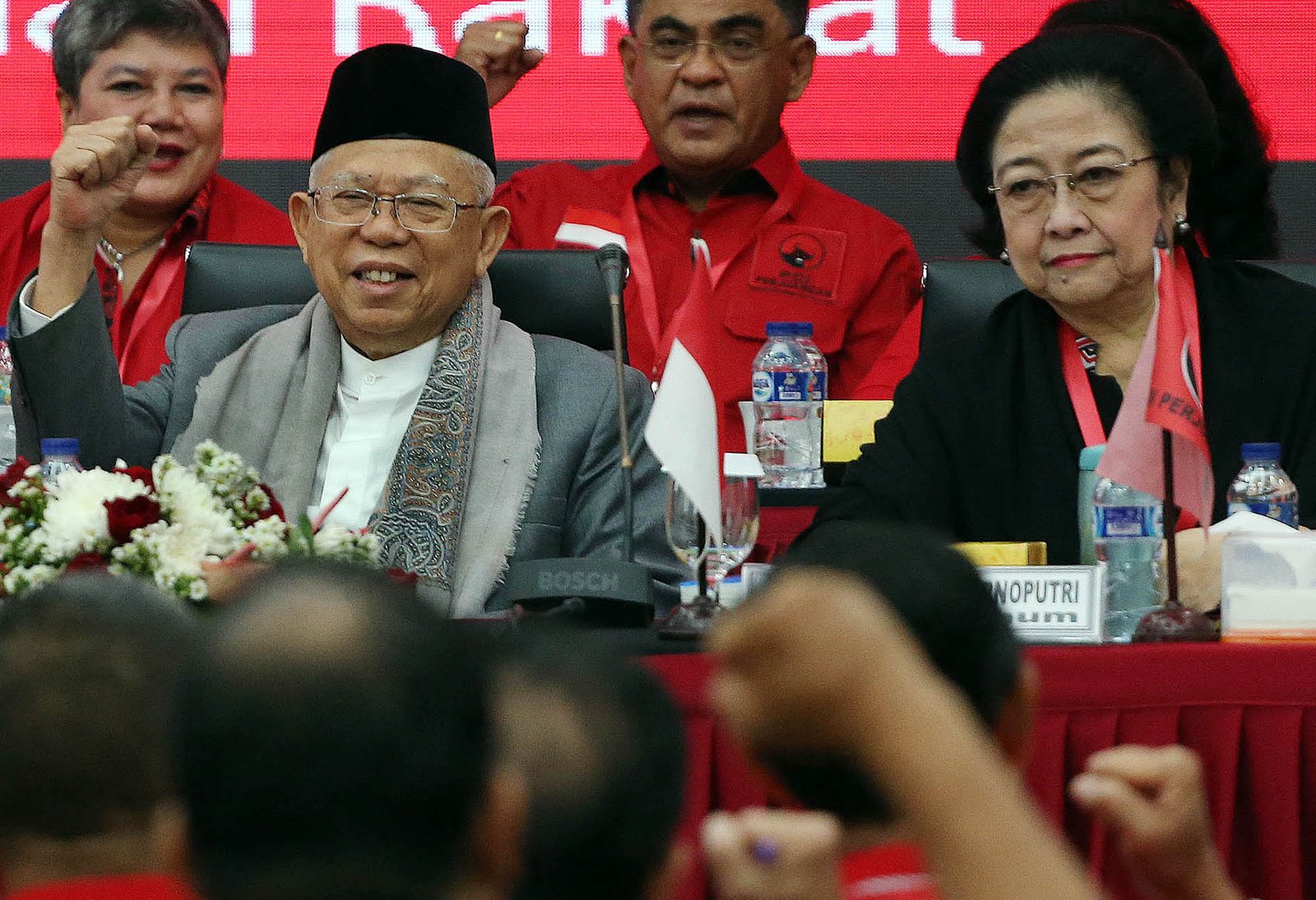 Ketua Umum PDIP Megawati Soekarnoputri bersama Calon Wakil Presiden Ma’ruf Amin saat Rapat Koordinasi Nasional (Rakornas) Konsolidasi Persiapan Pemenangan Pemilihan Legislatif dan Pemilihan Presiden dan Wakil Presiden (Pilpres) 2019, di Kantor DPP PDIP, Jalan Diponegoro, Jakarta, Sabtu (1/9/18). Pada Rakornas tersebut, PDIP akan memberikan pembekalan untuk para calon legislatif dan untuk memenangkan pasangan Capres-Cawapres Joko Widodo dan Ma’ruf Amin(Bisnis Jakarta/ADE)