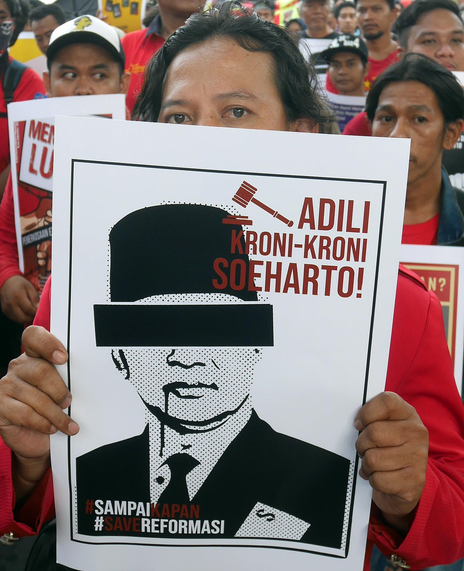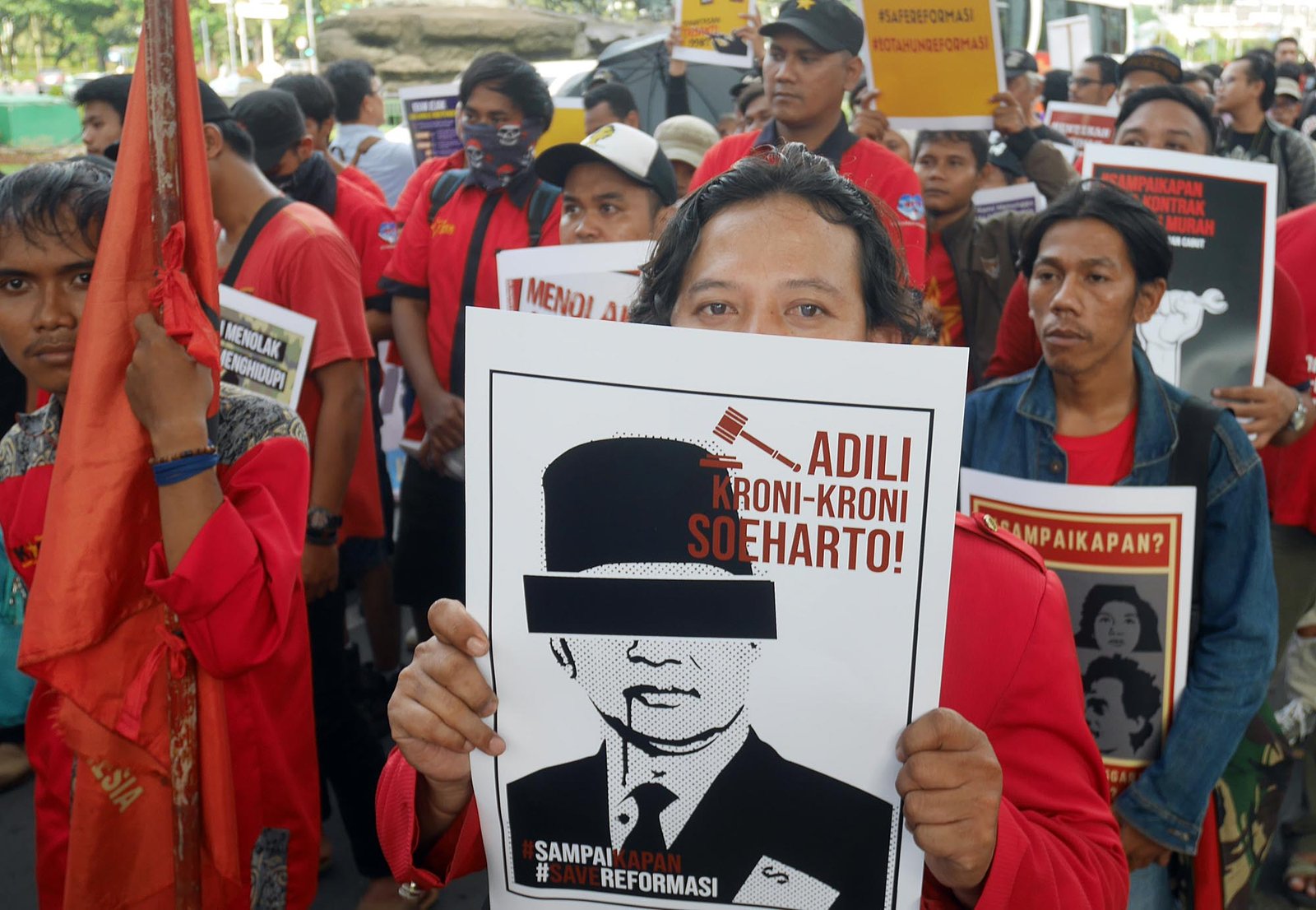 Massa Gerakan Buruh Untuk Rakyat saat aksi unjuk rasa memperingati 20 Tahun Reformasi dengan melakukan long march dari patung kuda menuju Istana Merdeka, Jakarta Pusat, Senin (21/5/18). Dalam aksinya Gerakan Buruh Untuk Rakyat mengutuk keras tindakan terorisme dalam bentuk apapun serta mengajak semua pihak menjaga situasi dan kondisi sosial masyarakat agar tidak terjadi konflik horizontal. Mereka juga menyerukan kepada seluruh masyarakat Indonesia untuk melawan segala bentuk sikap intoleransi.(Bisnis Jakarta/ADE)