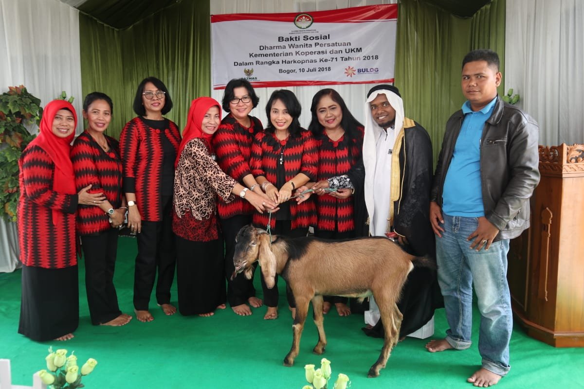 BOGOR (Bisnis Jakarta) – Dalam rangka memperingati Harkopnas tahun ini, Dharma Wanita Persatuan (DWP) Kementrian Koperasi dan UKM bekerjasama dengan Baznas (Badan Amil Zakat Nasional) dan Bulog, melakukan bakti sosial ke sejumlah Pondok Pesantren (Ponpes) dan Yayasan Panti Asuhan (PA) Anak Yatim Piatu di Kabupaten Bogor, Selasa (10/7).