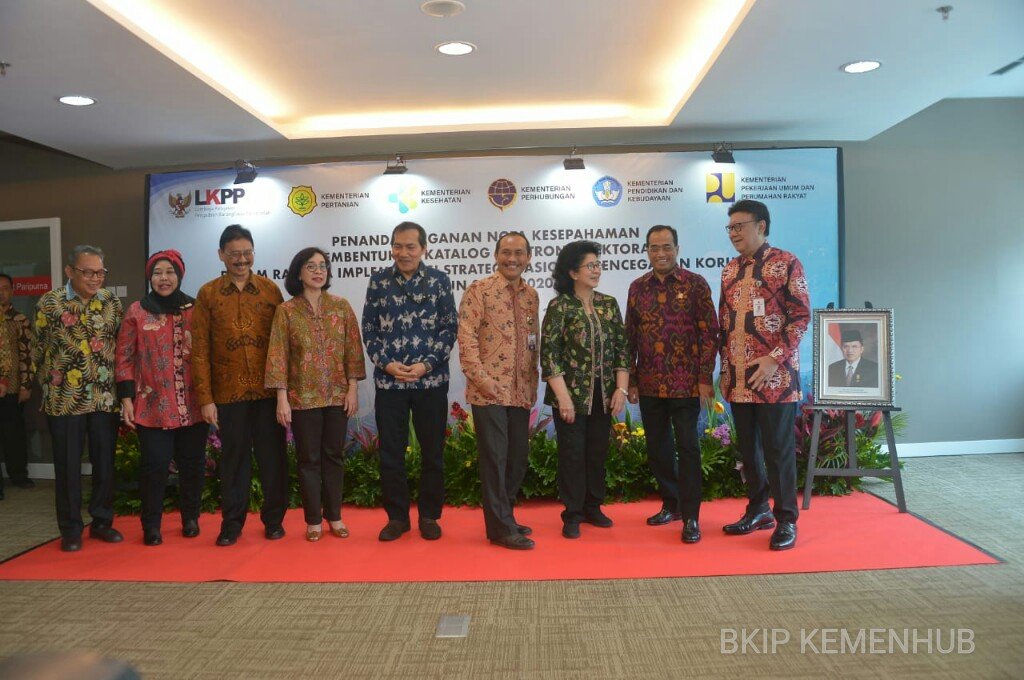 Dalam upaya mewujudkan komitmen pencegahan korupsi, Kementerian Perhubungan bekerjasama dengan Lembaga Kebijakan Pengadaan Barang/Jasa Pemerintah (LKPP) telah melakukan penandatanganan nota kesepahaman pemanfaatan katalog elektronik (e-katalog) sektoral dalam proses pengadaan barang/jasa. Menhub Budi Karya Sumadi hadir langsung melakukan penandatanganan di kantor LKPP Jakarta, Jumat (15/2).