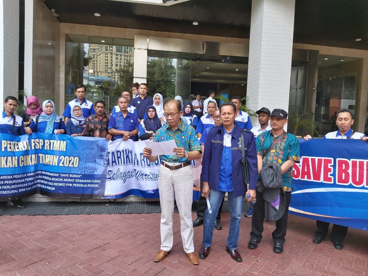 DPP Federasi Serikat Pekerja Rokok Tembakau Makanan Minuman (FSP RTMM) menggelar aksi menuntut agar pemerintah membatalkan rencana kenaikan cukai rokok, karena merugikan dan mengancam status pekerja industri rokok. Aksi yang diikuti pengurus dan anggota FSP RTMM dengan cara menyampaikan aspirasi kepada pemerintah melalui Kementerian Keuangan di Jakarta, Senin (23/9).