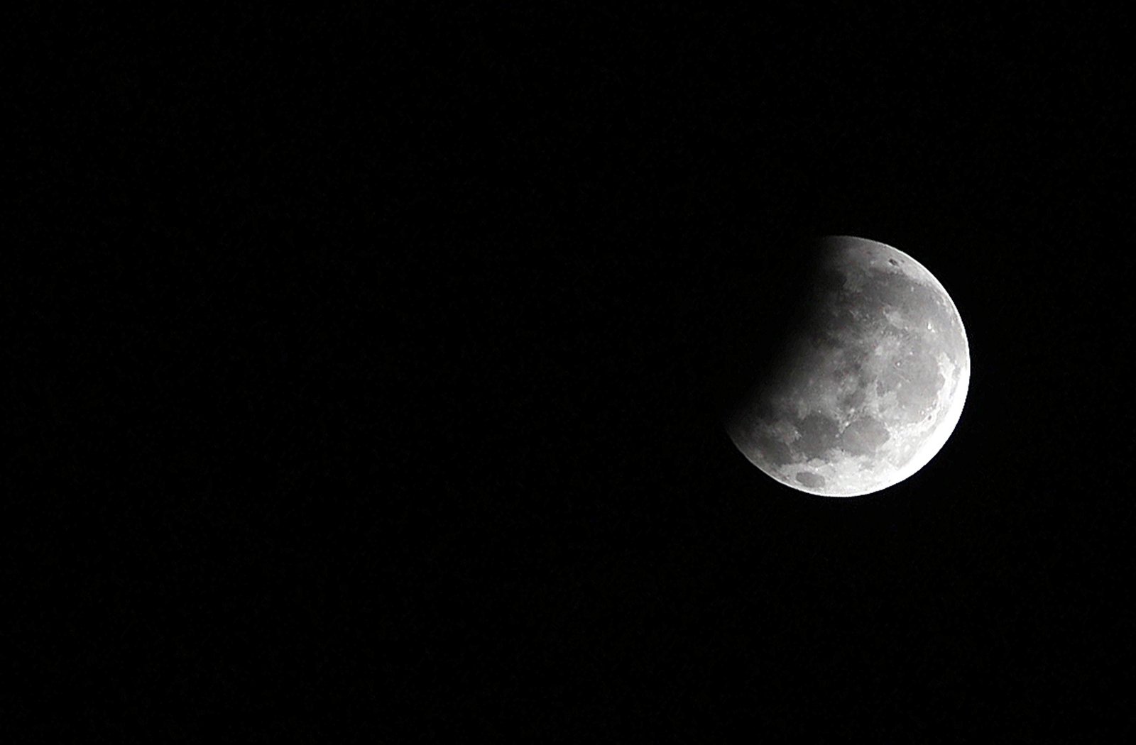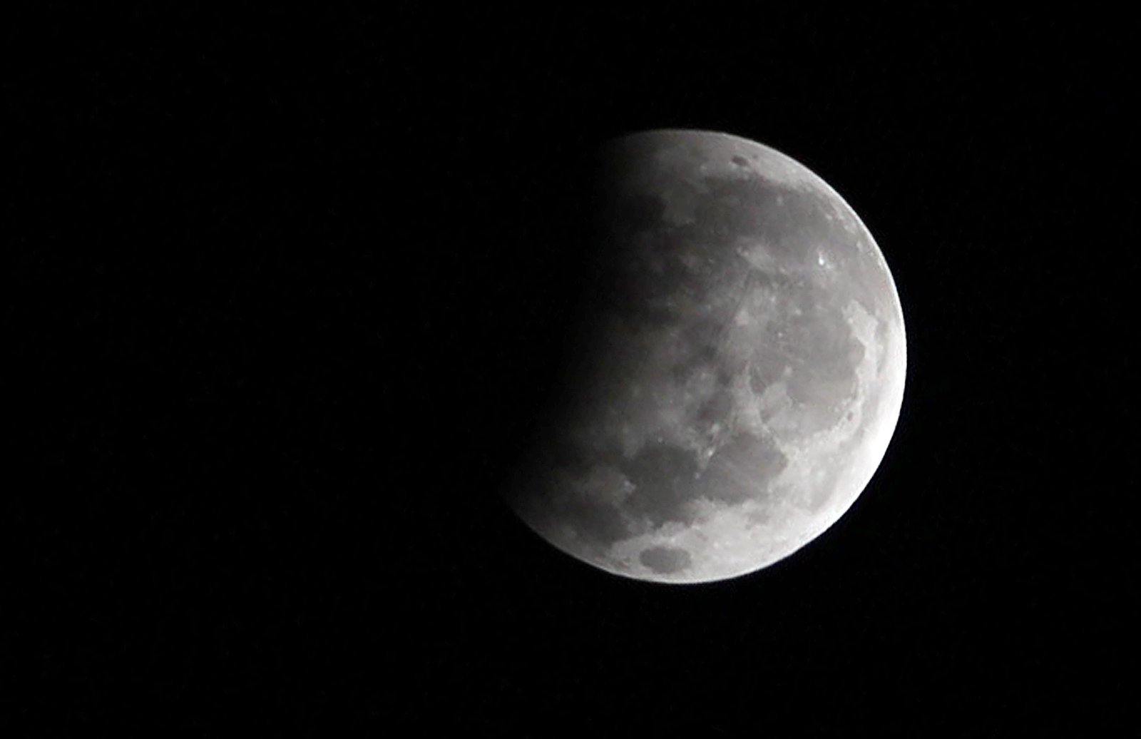 Gerhana bulan terlihat di langit Jakarta, Selasa (8/8). Fenomena gerhana bulan penumbra adalah gerhana samar karena bulan purnama hanya terkena bayangan sekunder.(Bisnis Jakarta/ADE)