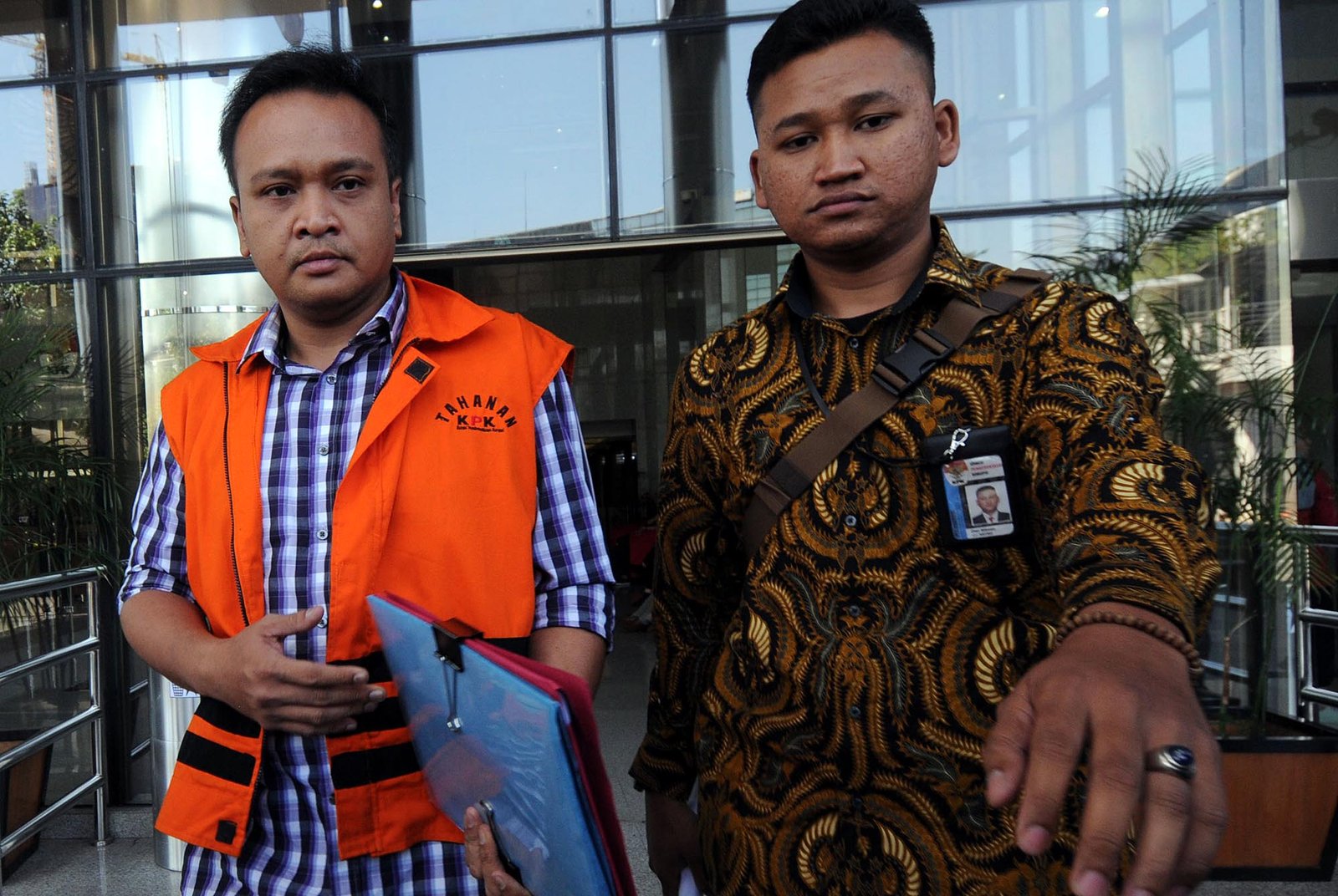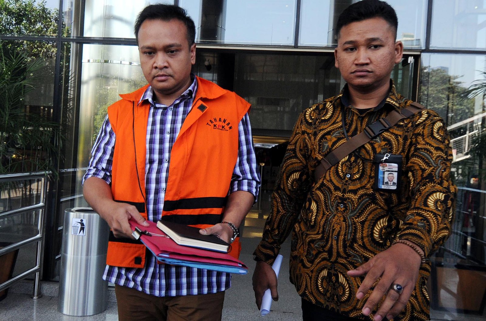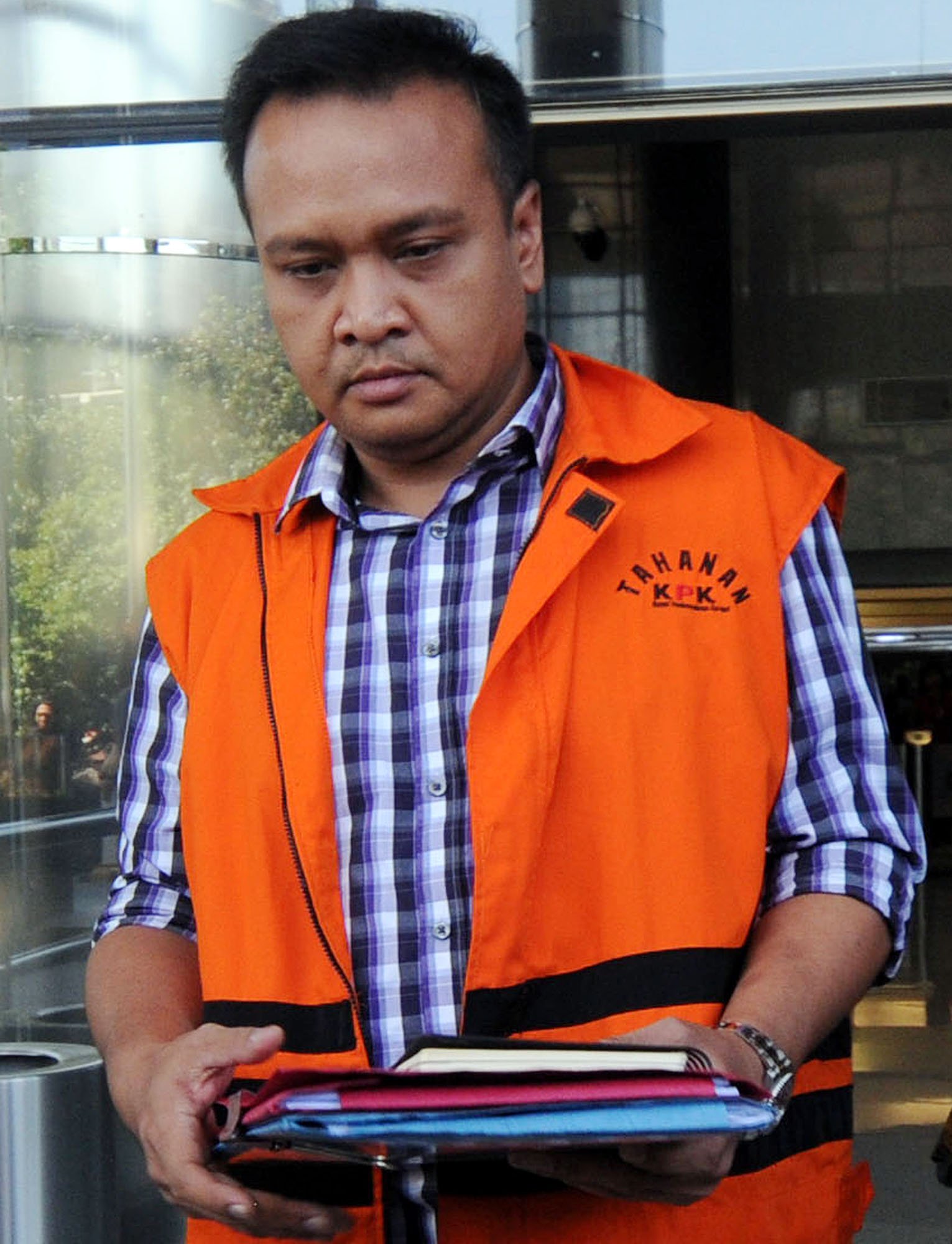 Tersangka kasus korupsi KTP Elektronik yang juga keponakan Setya Novanto, Irvanto Hendra Pambudi usai menjalani pemeriksaan menandatangani berkas yang telah lengkap atau P21 di gedung Komisi Pemberantasan Korupsi (KPK) di Kuningan, Jakarta Selatan, Jumat (6/7/18). KPK telah melimpahkan kasus e-KTP dengan tersangka keponakan Setya Novanto, Irvanto Hendra Pambudi Cahyo, ke penuntutan dan akan segera disidang.(Bisnis Jakarta/ADE)