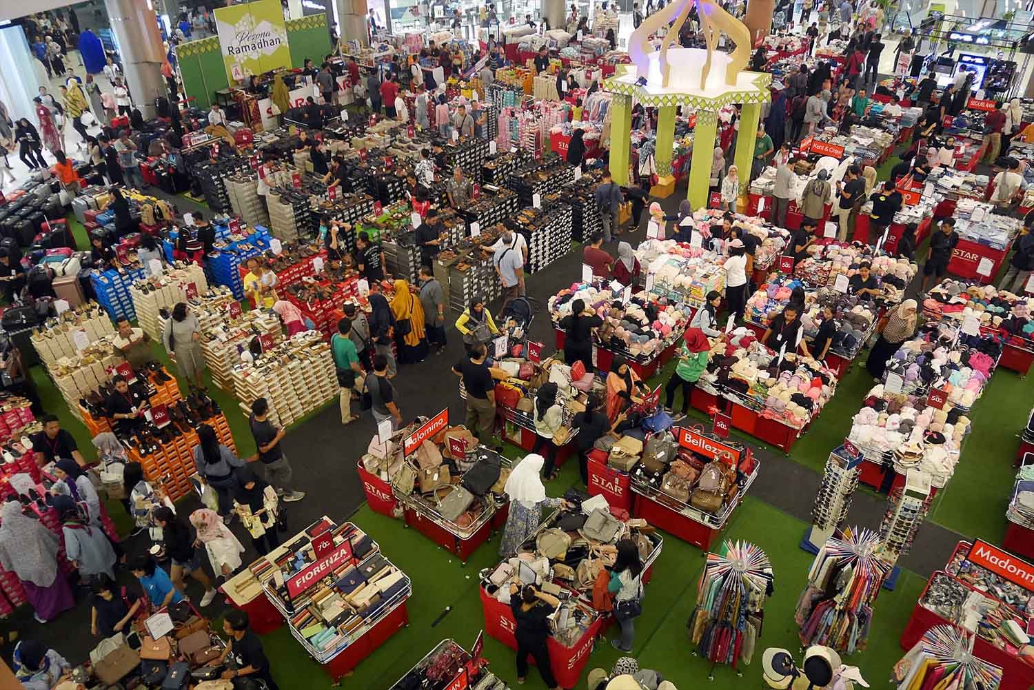Warga berbelanja kebutuhan lebaran di salah satu pusat perbelanjaan di kawasan Bekasi Barat, Jawa Barat, Selasa (12/6/18). Menjelang perayaan Idul Fitri 1438 H pusat-pusat perbelanjaan mulai dipadati masyarakat untuk memenuhi kebutuhan saat lebaran seperti membeli baju hingga makanan ringan.(Bisnis Jakarta/ADE)