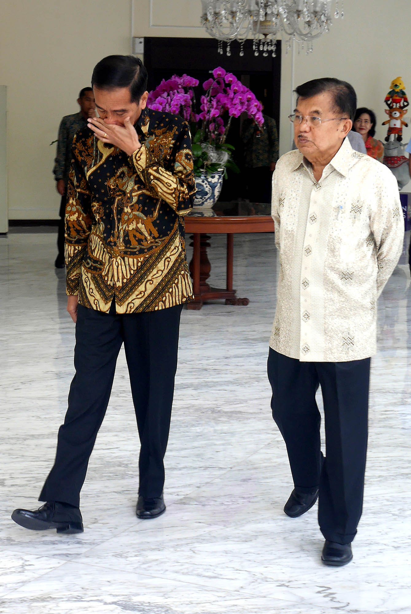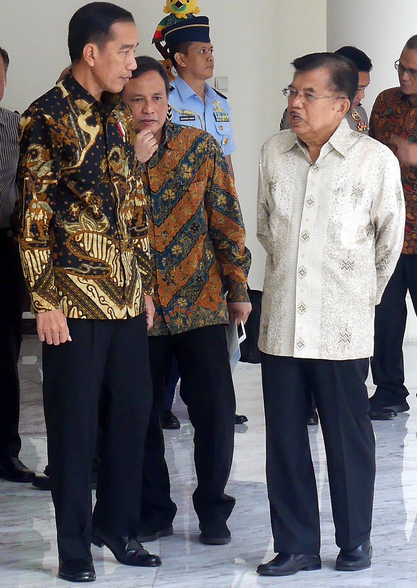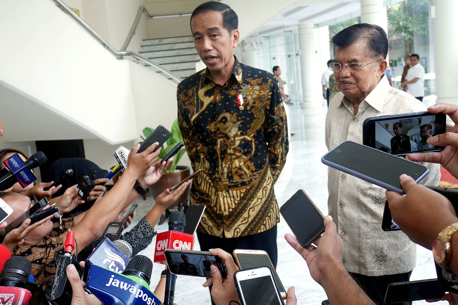 Presiden Joko Widodo usai menemui Wapres Jusuf Kalla di kantor Wapres, Jalan Medan Merdeka Utara, Jakarta Pusat, Kamis (9/8/18). Dalam pertemuan tersebut Presiden Jokowi meminta restu kepada Wapres Jusuf Kalla jelang pendaftaran capres-cawapres yang akan dilakukannya ke Komisi Pemilihan Umum (KPU), Jumat (10/8/18).(Bisnis Jakarta/ADE)