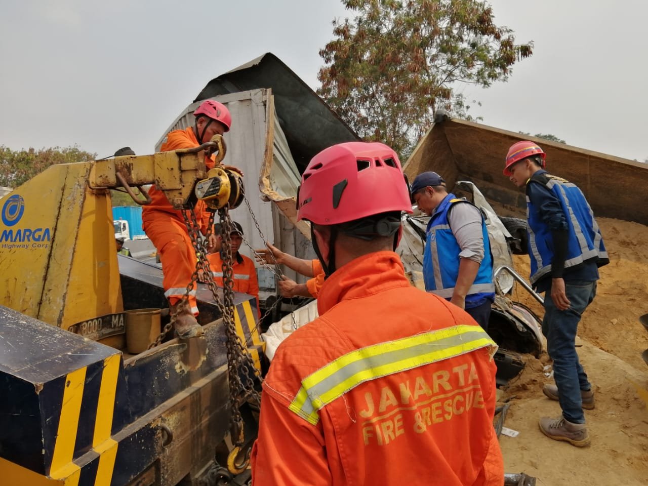 Saat ini Jasa Marga Cabang Purbaleunyi bekerjasama dengan pihak Kepolisian/PJR serta Rumah Sakit terdekat telah mengerahkan kendaraan ambulans, kendaraan pemadam kebakaran dan kendaraan rescue di lokasi untuk menangani evakuasi korban dan kendaraan.