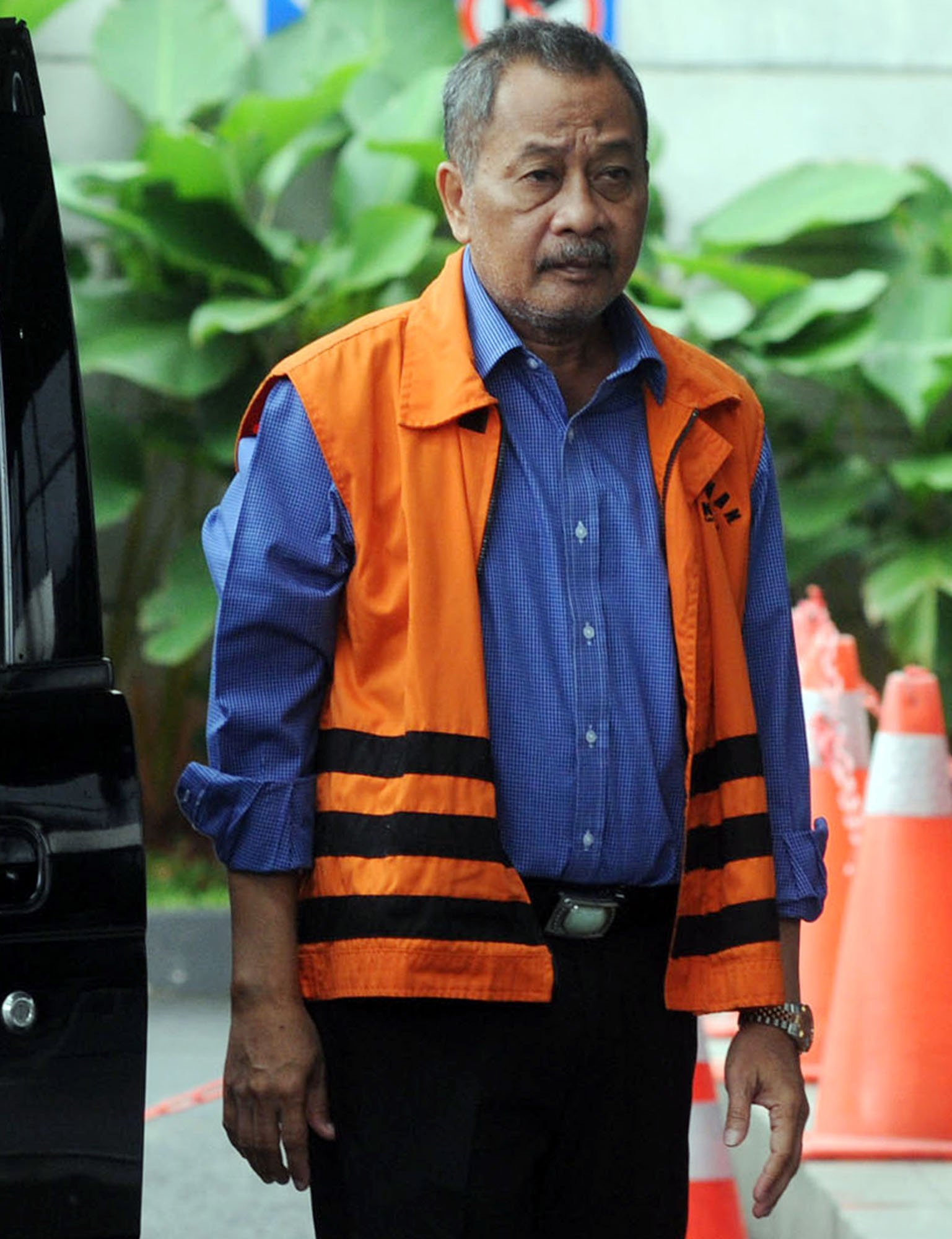 Tersangka Ketua Pengadilan Tinggi Manado nonaktif Sudiwardono memenuhi panggilan pemeriksaan penyidik Komisi Pemberantasan Korupsi (KPK) di Kuningan, Jakarta Selatan, Selasa (19/12). Sudiwardono diperiksa untuk pelengkapan berkas terkait dugaan menerima suap untuk mengamankan putusan banding Marlina Moha yang merupakan ibu dari tersangka dugaan suap anggota DPR dari Fraksi Partai Golkar Aditya Moha.(Bisnis Jakarta/ADE)
