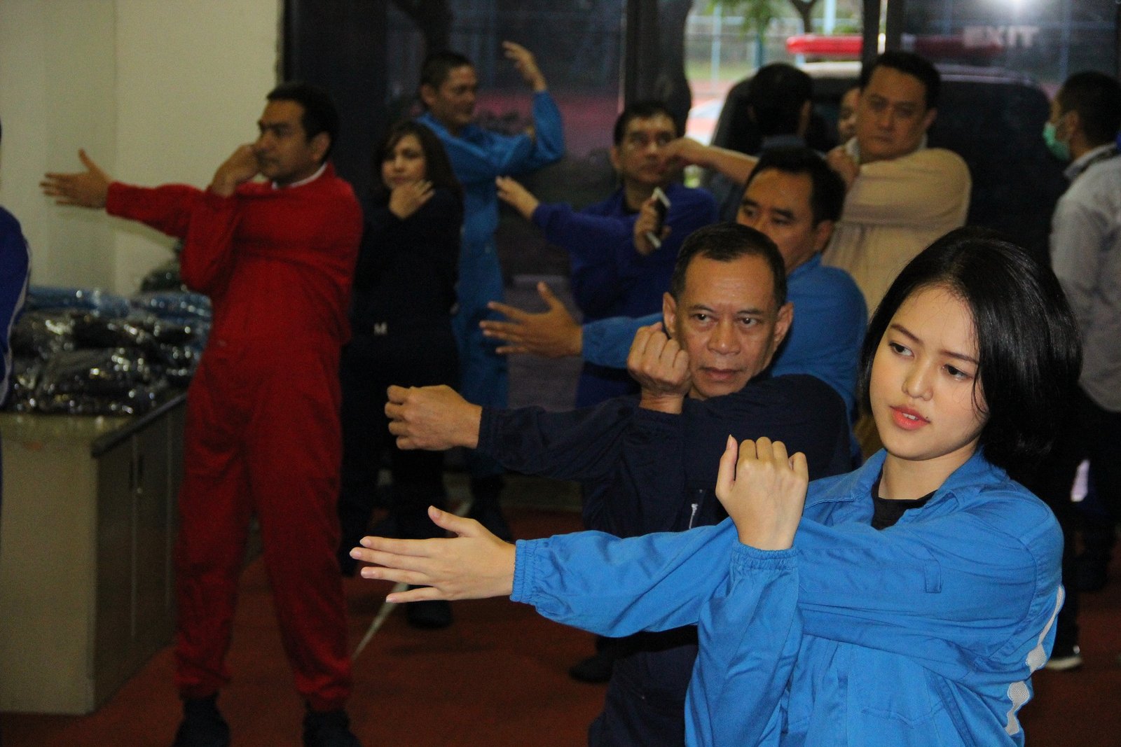 Maskapai nasional Garuda Indonesia bersama anak usaha Citilink Indonesia menggelar pelatihan mitigasi safety yang melibatkan jajaran Direksi bersama-sama dengan siswa siswi awak kabin di Garuda Indonesia Training Center (GITC) Jakarta, Rabu (23/1).