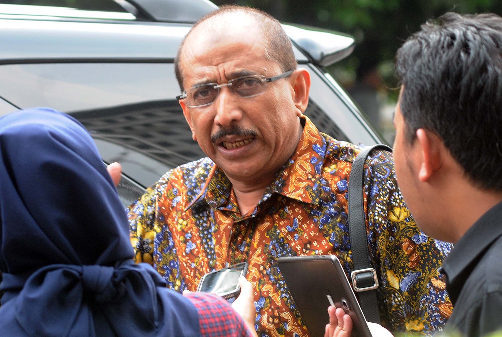 Mantan anggota DPR Djamal Aziz Attamimi usai bertemu dengan tim penyidik di Gedung Komisi Pemberantasan Korupsi (KPK), Kuningan, Jakarta Selatan, Senin (16/4/18). Djamal Aziz Attamimi rencananya akan diperiksa sebagai saksi terkait kasus dugaan korupsi proyek pengadaan e-KTP.(Bisnis Jakarta/ADE)