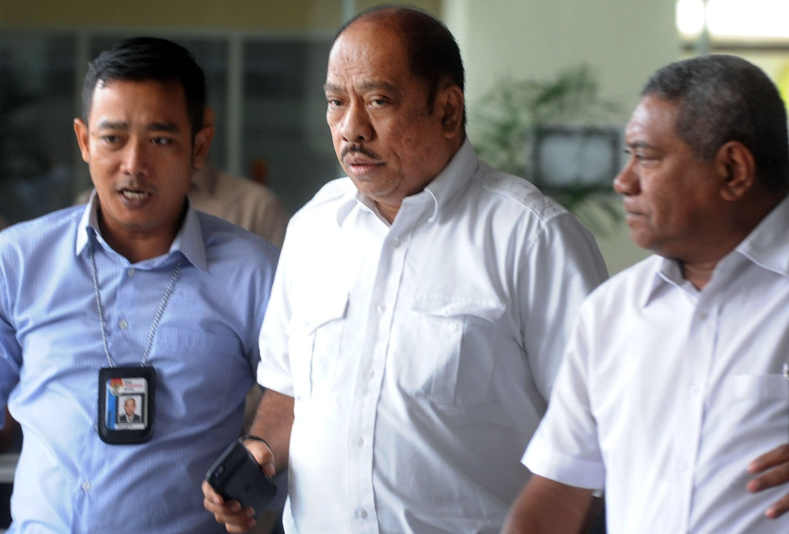 Anggota DPR dari Fraksi Partai Golkar Melchias Marcus Mekeng usai menjalani pemeriksaan penyidik Komisi Pemberantasan Korupsi (KPK) di Kuningan, Jakarta Selatan, Kamis (10/8). Melchias Markus Mekeng diperiksa sebagai saksi untuk tersangka Ketua DPR Setya Novanto terkait kasus korupsi proyek e-KTP.(Bisnis Jakarta/ADE)