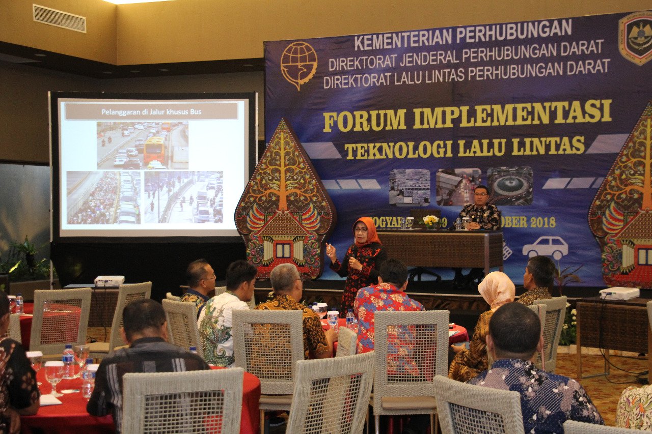 Forum Implementasi Teknologi Lalu Lintas Tahun 2018 bertujuan agar peserta memperoleh informasi mengenai Teknik Manajemen dan Rekayasa Lalu Lintas pada Wilayah Aglomerasi; dan Pengembangan Sumber Daya Manusia dan Sistem Teknologi Area Traffic Control System ATCS yang terdiri dari 8 materi.