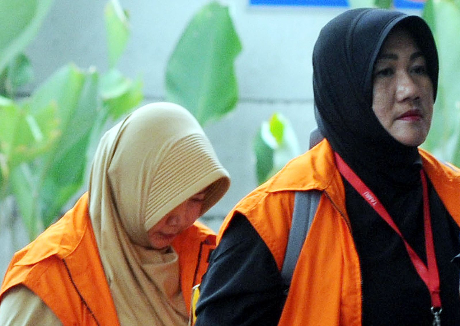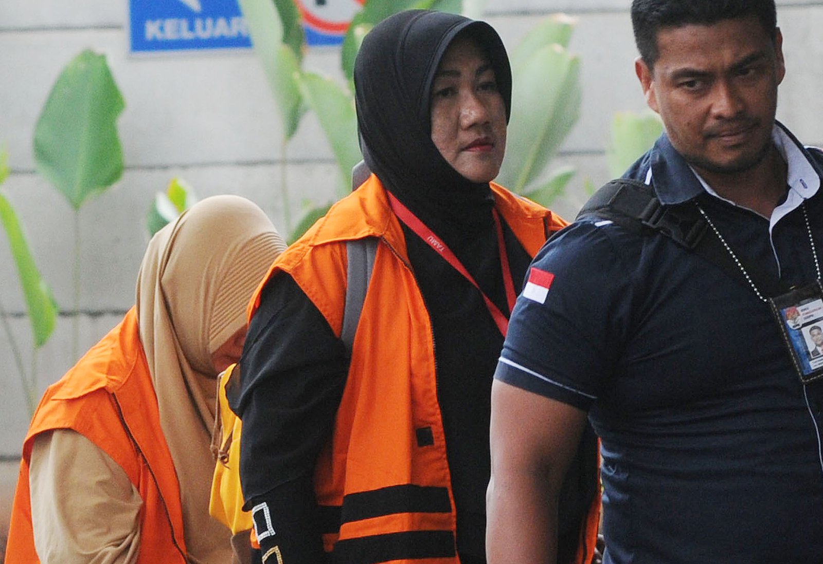 Dua Anggota DPRD Kota Malang, Asia Iriani dan Een Ambarsari (kiri) menjalani pemeriksaan perdana oleh penyidik Komisi Pemberantasan Korupsi (KPK) pasca ditahan di gedung KPK, Kuningan, Jakarta Selatan, Kamis (6/9/18). Keduanya diperiksa terkait kasus dugaan menerima suap pembahasan APBD-P Pemerintah Kota Malang Tahun Anggaran (TA) 2015.(Bisnis Jakarta/ADE)