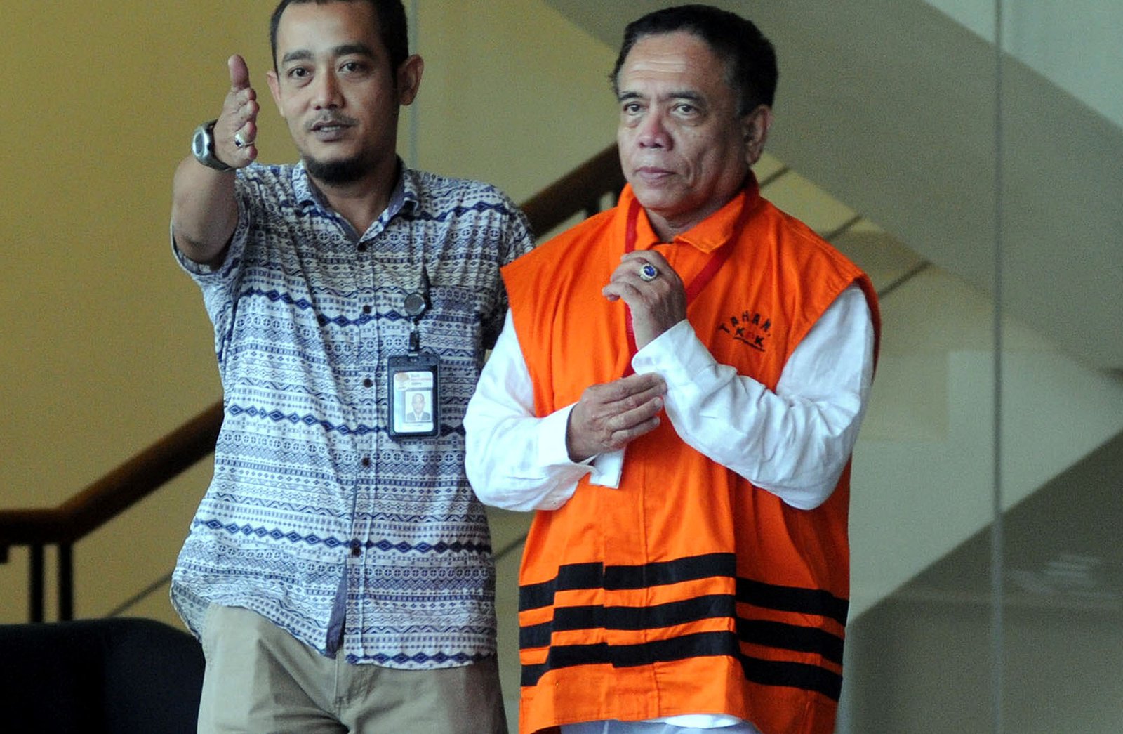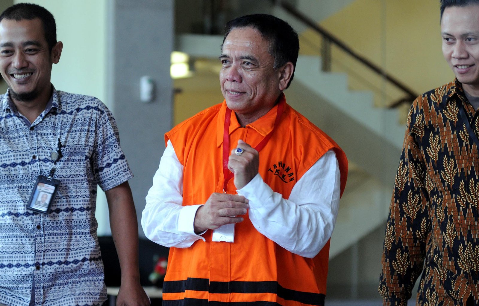 Gubernur Aceh Irwandi Yusuf usai menjalani pemeriksaan perdana pasca terjaring Operasi Tangkap Tangan (OTT) di gedung Komisi Pemberantasan Korupsi (KPK), Kuningan, Jakarta Selatan, Jumat (6/7/18). KPK melakukan pemeriksaan lanjutan terhadap empat tersangka diantaranya Gubernur Aceh Irwandi Yusuf, Bupati Bener Meriah Ahmadi dan dua orang dari pihak swasta untuk melakukan pengembangan terkait kasus suap “fee” dari proyek pembangunan infrastruktur dari Dana Otonomi Khusus Aceh (DOKA) Provinsi Aceh Tahun Anggaran 2018.(Bisnis Jakarta/ADE)