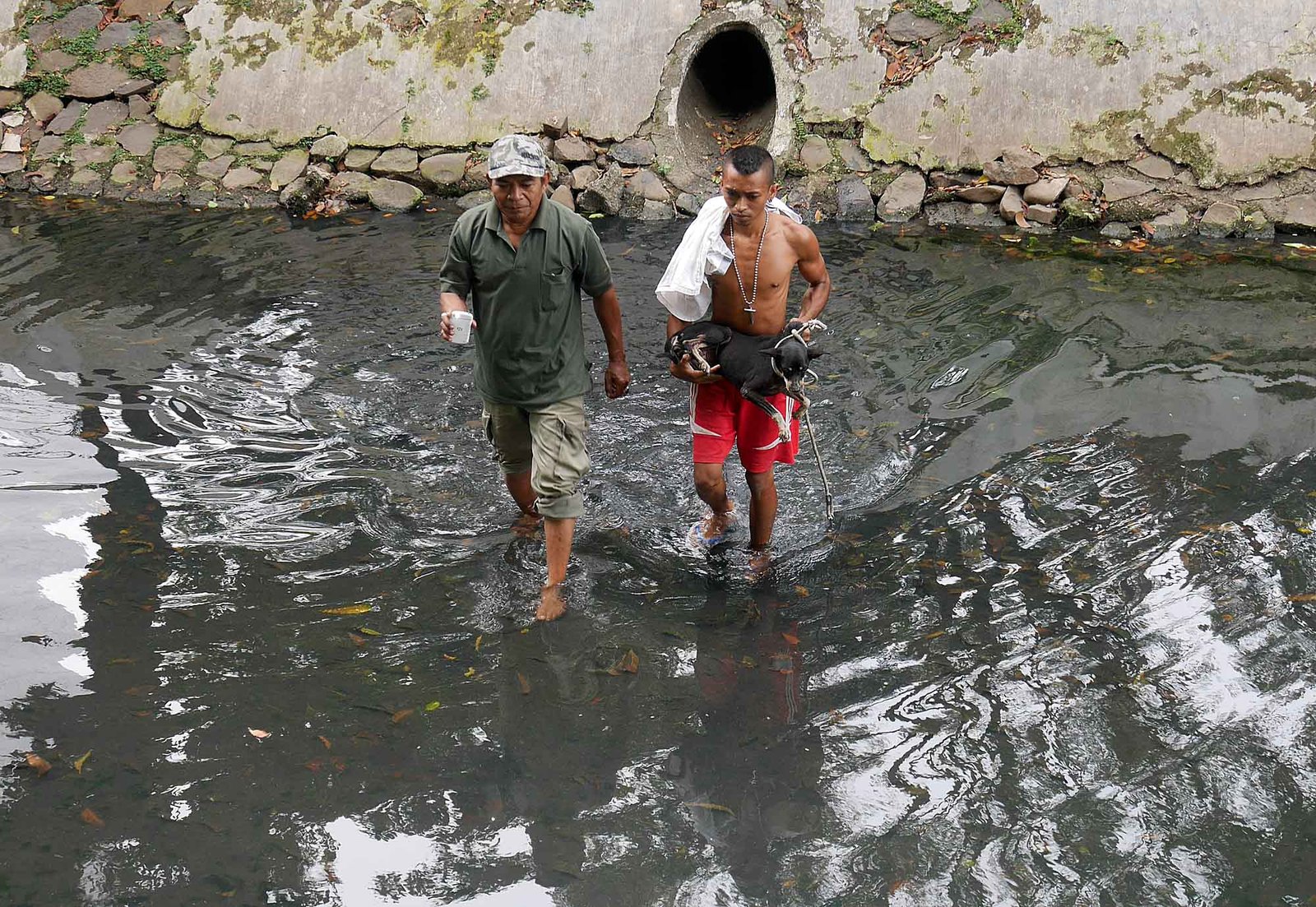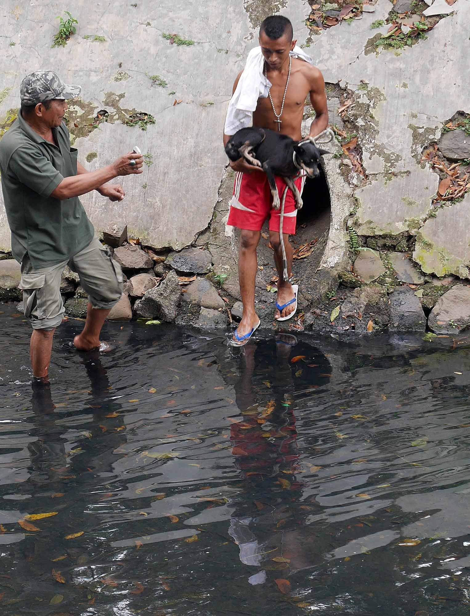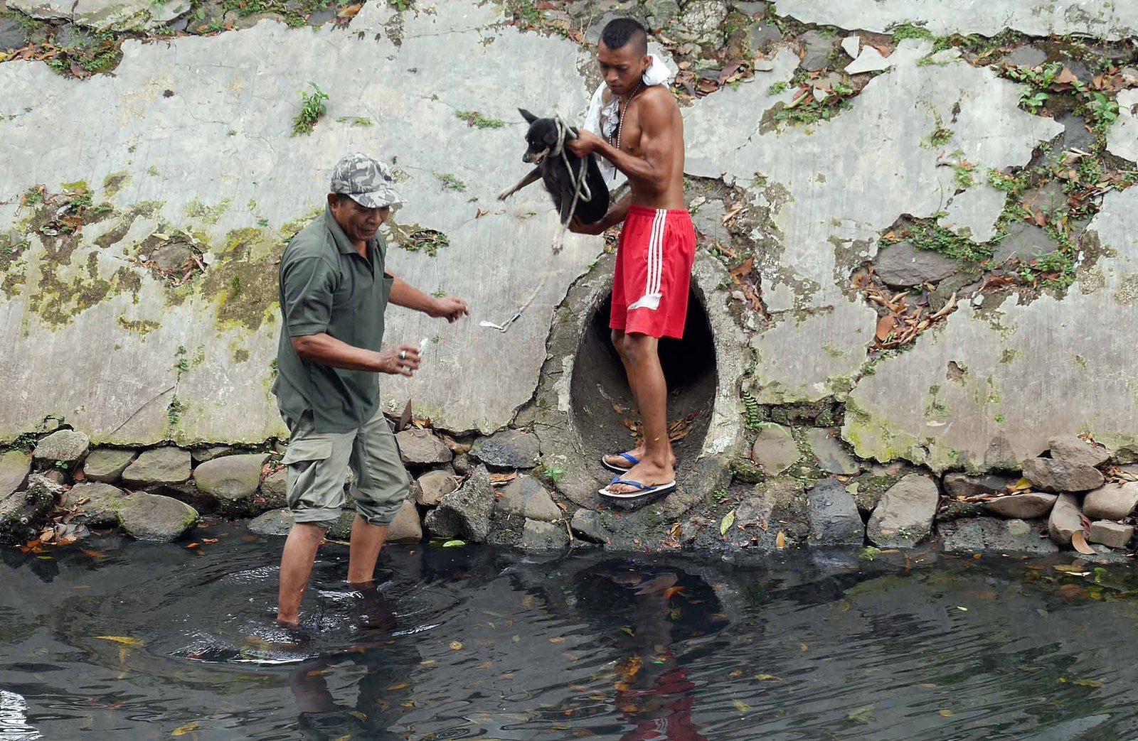Petugas Animal Rescue menyelamatkan seekor anjing yang terjebak di gorong-gorong Kali Gresik, Menteng, Jakarta Pusat, Rabu (23/5/18). Anjing yang terjebak selama 3 hari di gorong-gorong tersebut berhasil diselamatkan.(Bisnis Jakarta/ADE)