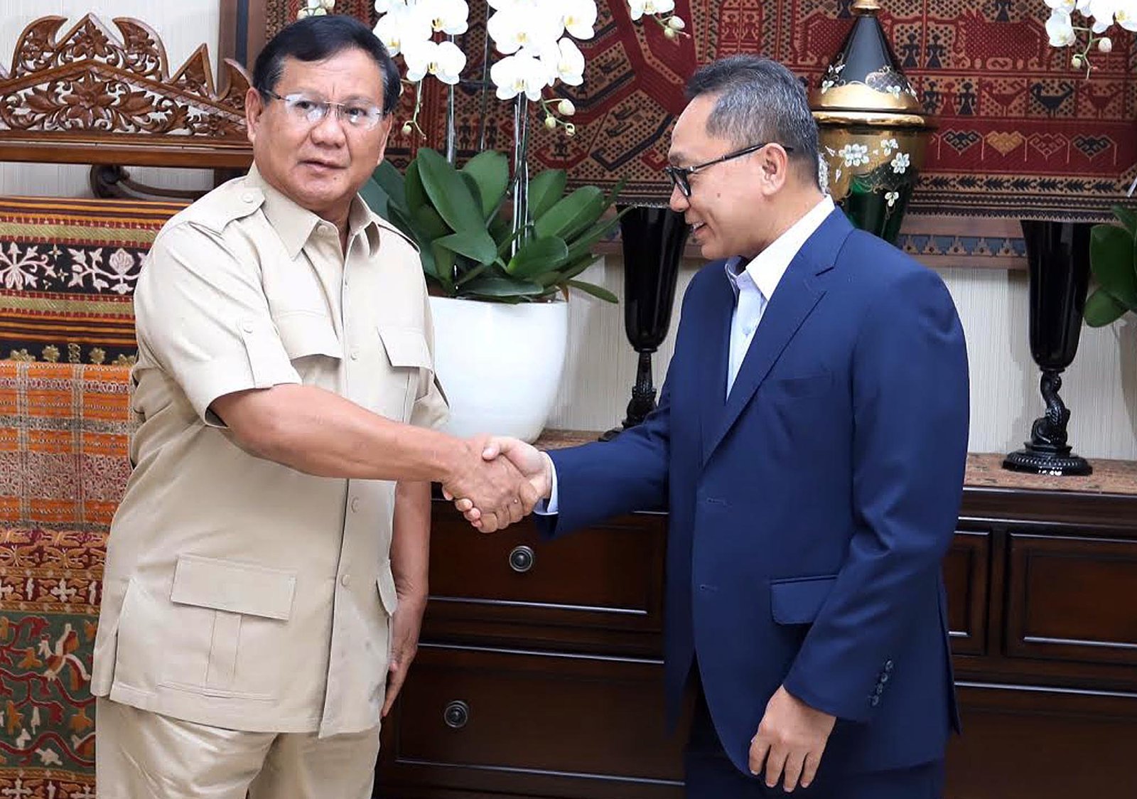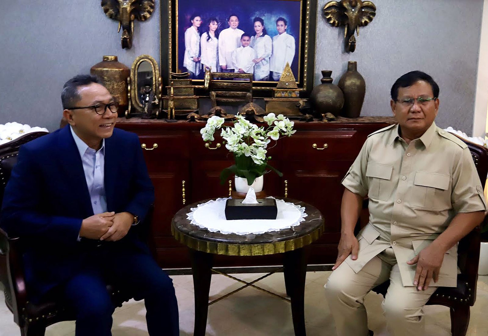Ketua Umum Partai Gerindra Prabowo Subianto bertemu Ketua Umum Partai Amanat Nasional (PAN) Zulkifli Hasan di Rumah Dinas Ketua MPR, Kompleks Widya Chandra, Jakarta Selatan, Senin (25/6/18). Pertemuan tertutup tersebut selain ajang silaturahmi juga membicarakan tentang pilkada serentak serta meminta TNI dan Polri untuk netral dalam pilkada.(Bisnis Jakarta/ADE)
