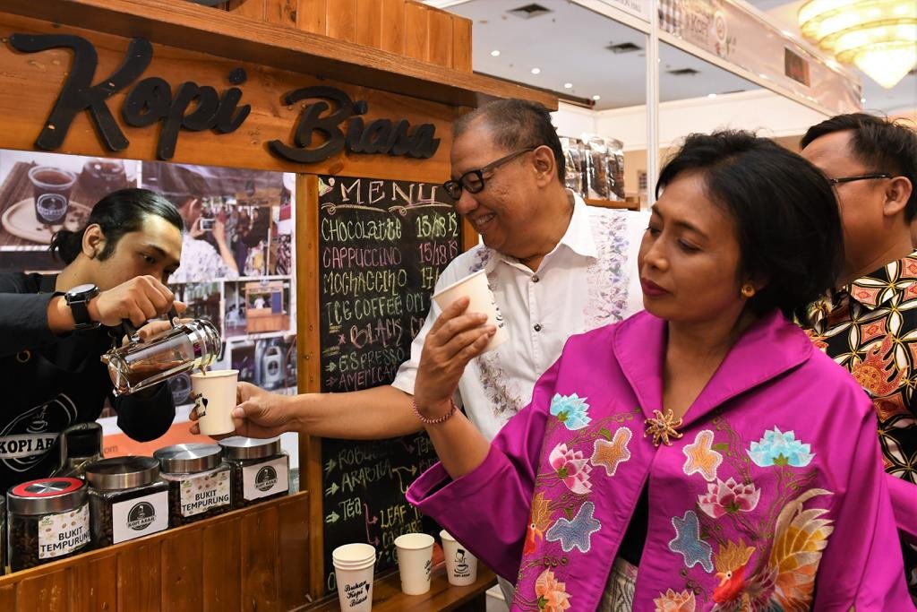 Untuk meningkatkan pemasaran kopi di kancah domestik maupun internasional, Lembaga Layanan Pemasaran Koperasi Usaha Kecil dan Menengah (LLP-KUKM) Kementerian Koperasi dan UKM, menyelenggarakan Smesco Rembug Kopi Nasional 2019 yang dibuka Menteri Koperasi dan UKM, AAGN Puspayoga di Jakarta, 20-22 September 2019.