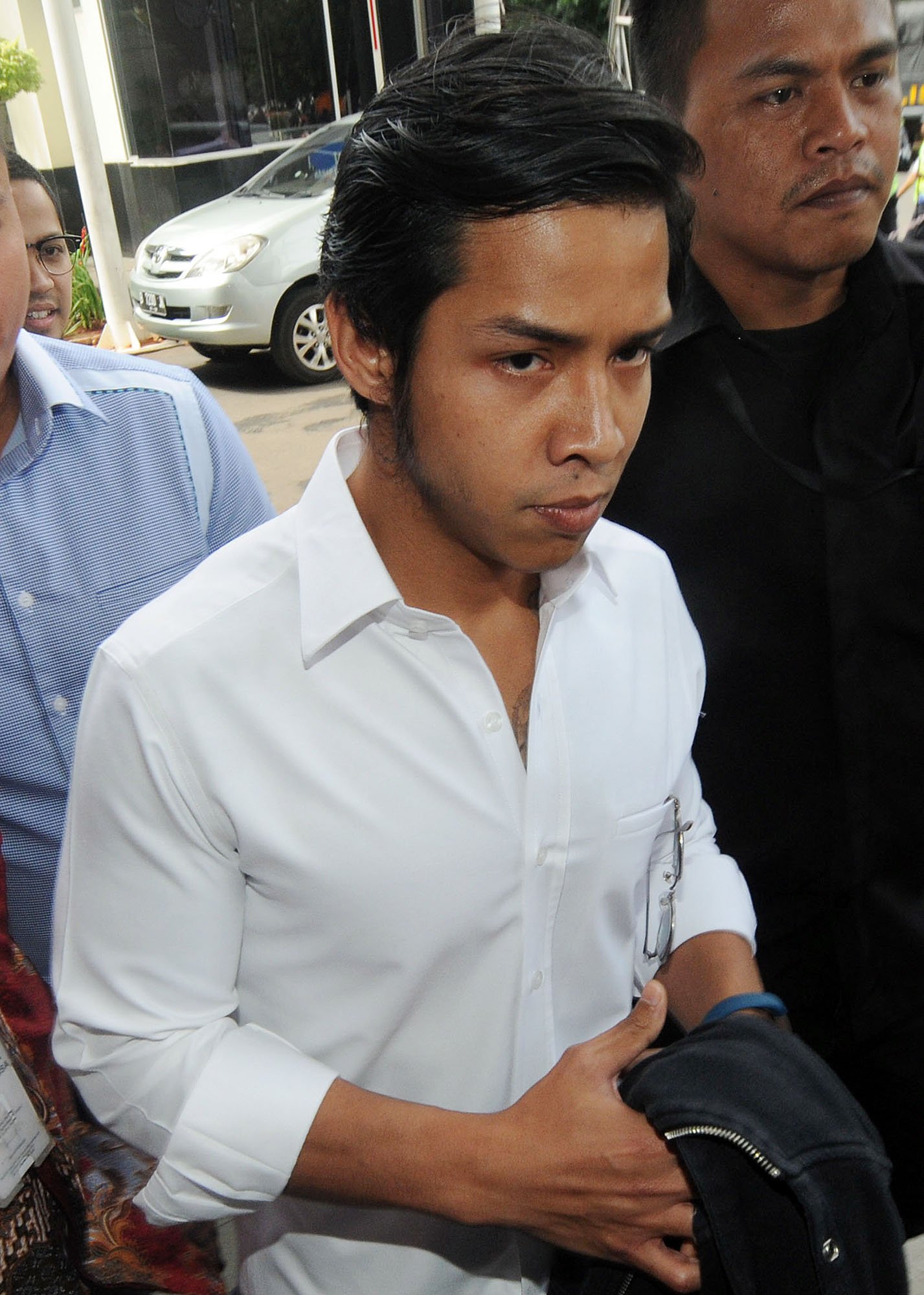 Rheza Herwindo putra sulung terdakwa kasus dugaan korupsi kartu tanda penduduk berbasis elektronik atau e-KTP Setya Novanto memenuhi panggilan pemeriksaan penyidik Komisi Pemberantasan Korupsi (KPK) di Kuningan, Jakarta Selatan, Jumat (22/12). Rheza Herwindo diperiksa sebagai saksi untuk Dirut PT Quadra Solution Anang Sugiana Sudiharjo terkait dugaan kasus korupsi mega proyek e-KTP.(Bisnis Jakarta/ADE)