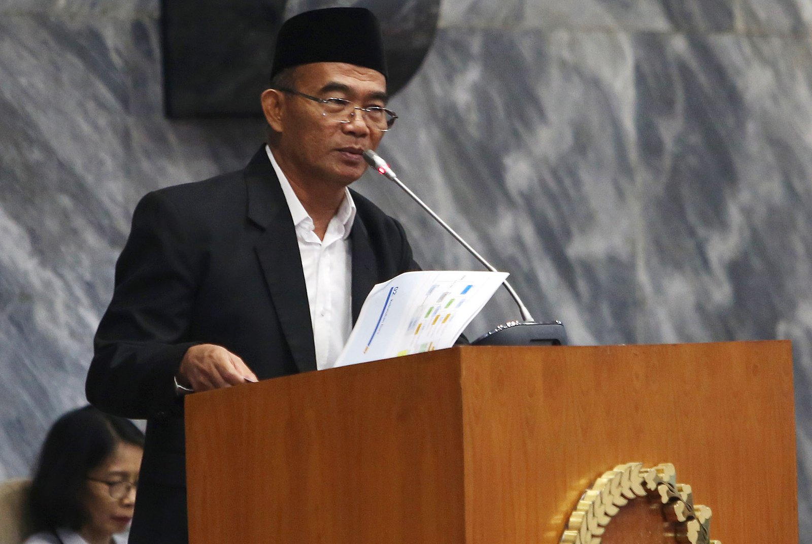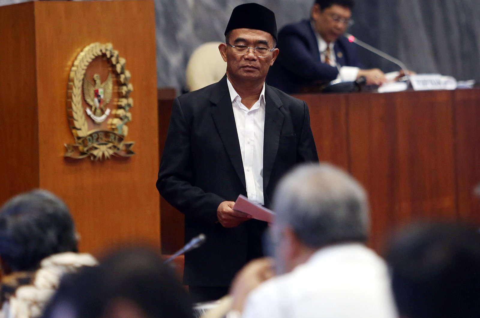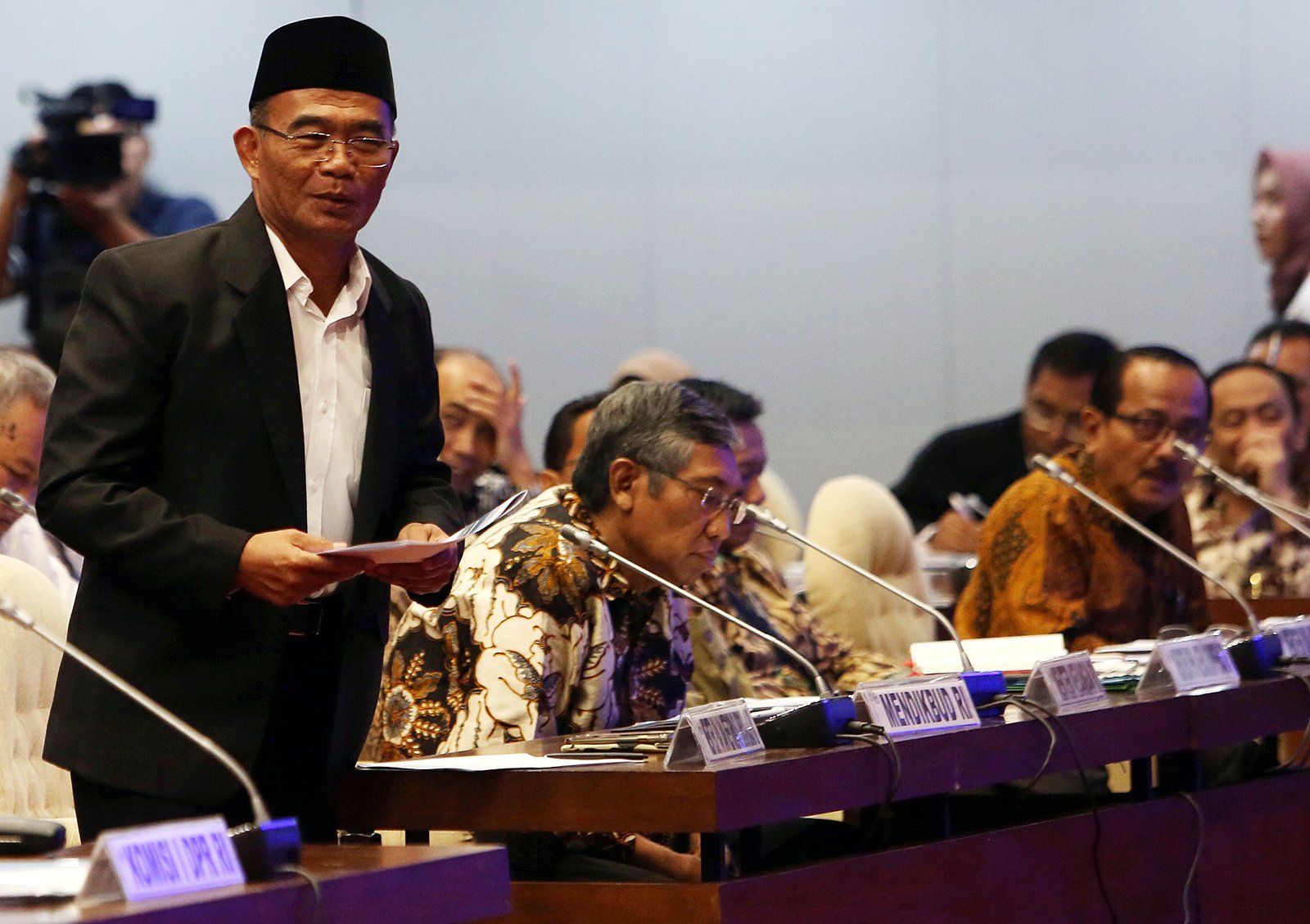 Mendikbud Muhadjir Effendy saat rapat kerja gabungan dengan DPR RI membahas pemberian THR bagi pegawai honorer di gedung DPR, Jakarta Pusat, Senin (4/6/18). Rapat kerja gabungan tujuh komisi di DPR dengan Menteri Dalam Negeri, Menteri Keuangan, Menteri Pendayagunaan Aparatur Negara dan Reformasi Birokrasi, Menteri Dalam Negeri, Menteri PPN,/Kepala Bapenas, Menteri Luar Negeri, Menteri Kesehatan, dan Menteri Agama untuk membahas penyelesaian masalah honorer K2 (kategori dua) hanya dihadiri Mendikbud Muhadjir Effendy.(Bisnis Jakarta/ADE)