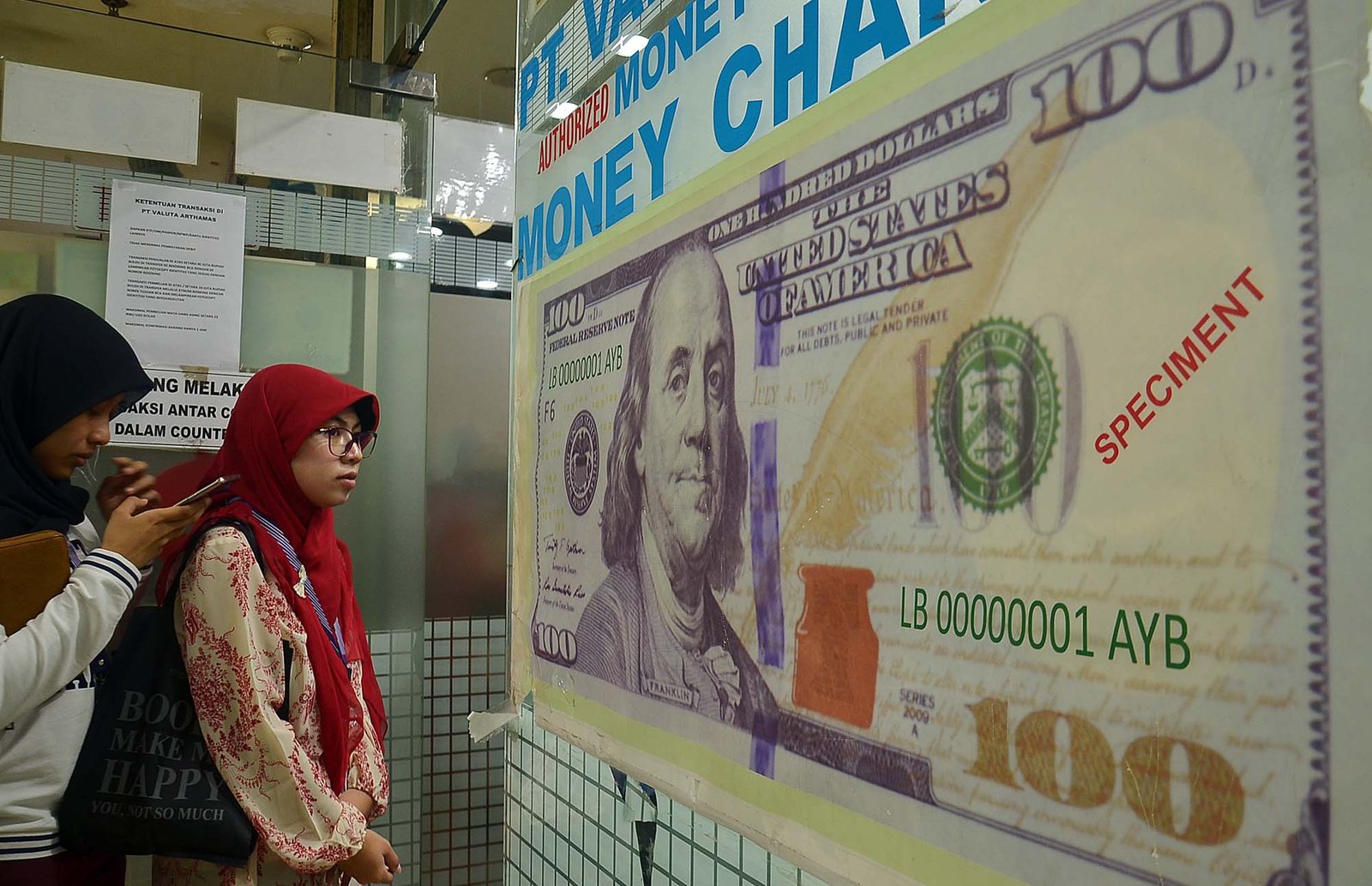 Petugas memperlihatkan uang pecahan dolar Amerika Serikat di gerai penukaran mata uang asing di kawasan Kuningan, Jakarta Selatan, Rabu (5/9/18). Kondisi nilai tukar rupiah terus tergerus terhadap Dolar Amerika Serikat (AS). Nilai tukar Rupiah terhadap Dollar AS masih bertahan pada posisi Rp 15.000.(Bisnis Jakarta/ADE)