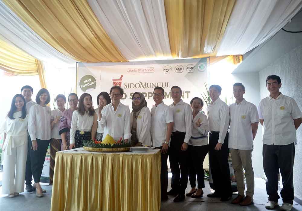 Direktur Sido Muncul Irwan Hidayat memotong tumpeng saat peluncuran 7 produk baru berupa food suplement dalam kemasan soft capsule di Kantor Sido Muncul Cipete, Jakarta Selatan. PT Industri Jamu dan Farmasi Sido Muncul, Tbk meluncurkan tujuh produk baru Food Supplement yaitu Tolak Angin, Tolak Linu, Sari Kunyit, Vitamin E 100 I.U, Vitamin E 300 I.U, Vitamin D3 400 I.U, dan Virgin Coconut Oil (VCO). Tujuh produk yang diluncurkan tersebut merupakan inovasi dari Food Supplement Sido Muncul, yang dikemas dalam bentuk soft capsule. Langkah ini dilakukan agar perusahaan dapat memperluas pangsa pasar ekspor.