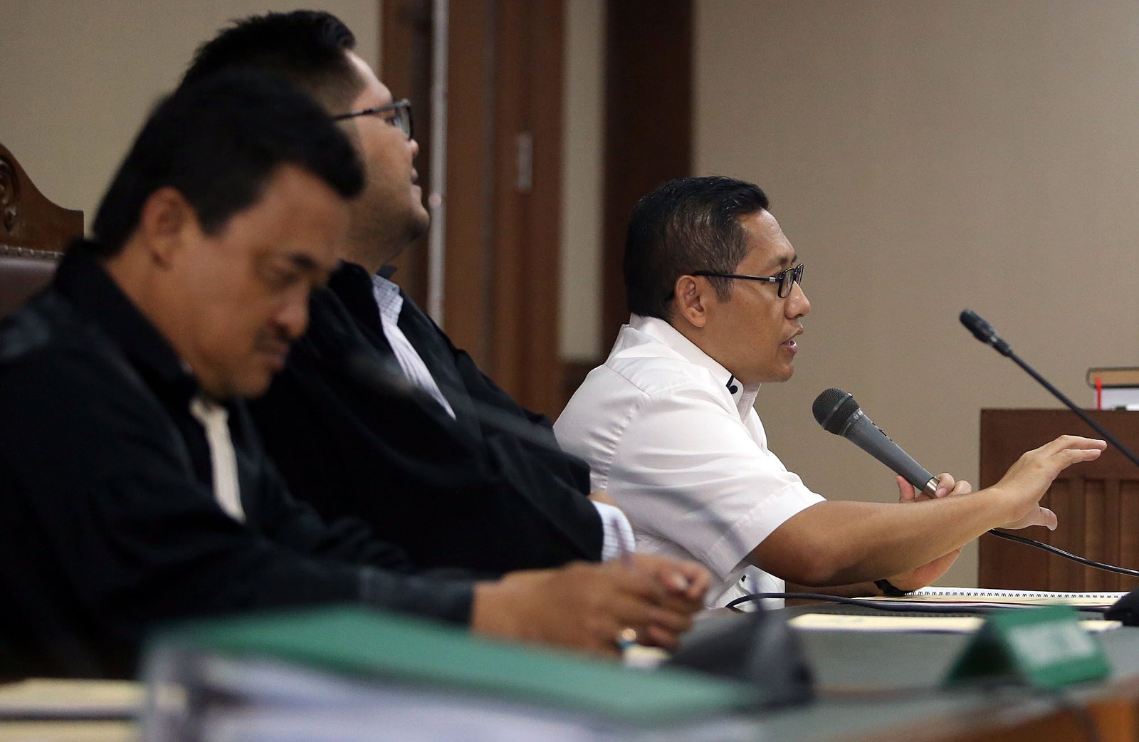 Mantan Ketua Umum Partai Demokrat Anas Urbaningrum saat menjalani sidang lanjutan Peninjauan Kembali (PK) di Pengadilan Negeri Jakarta Pusat, Kemayoran, Jakarta Pusat, Kamis (12/7/18). Terpidana kasus korupsi Pembangunan Pusat Pendidikan dan Sekolah Olahraga Nasional (P3SON) Hambalang itu mengajukan PK seusai divonis 14 tahun penjara di tingkat kasasi.(Bisnis Jakarta/ADE)