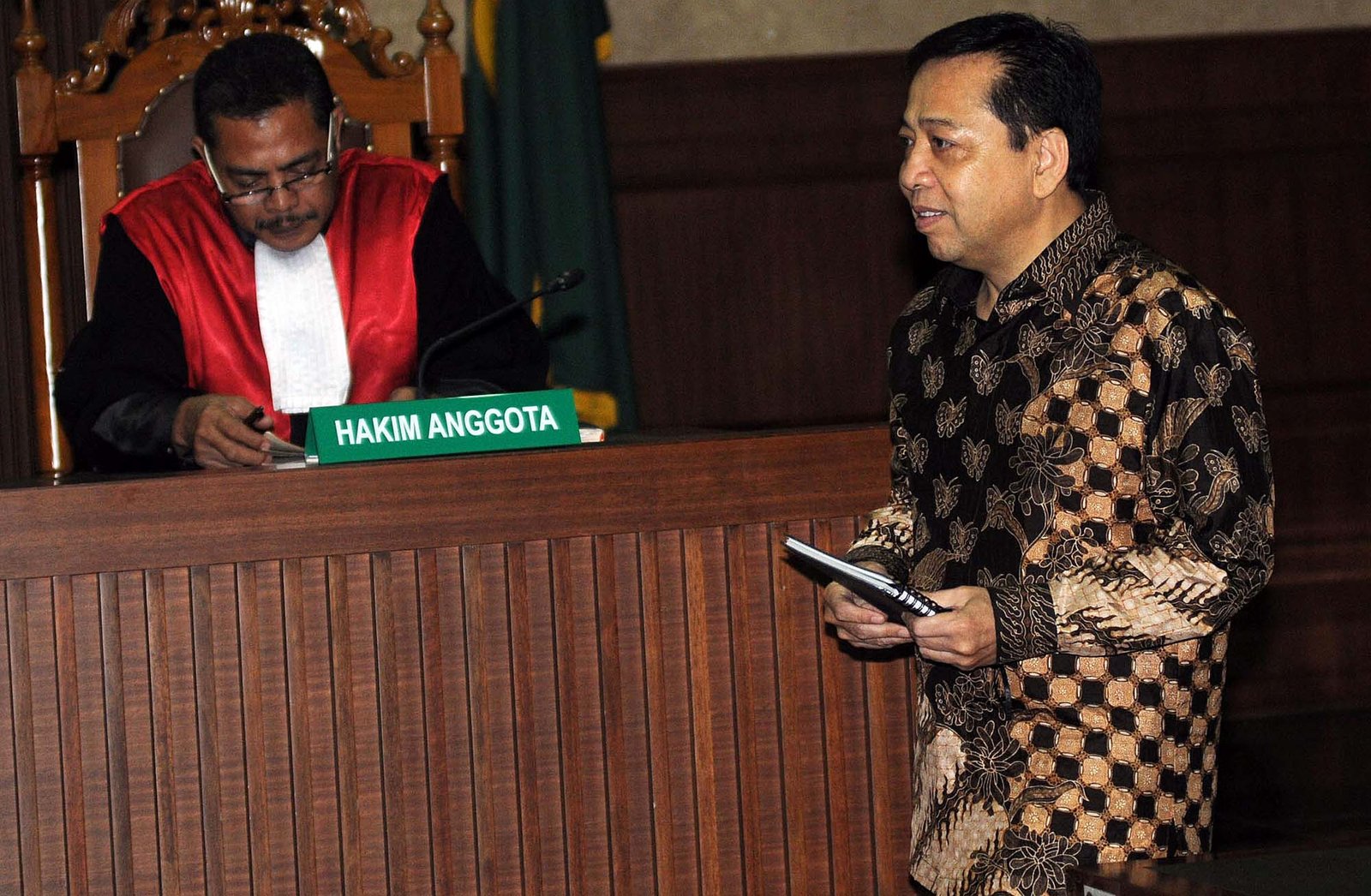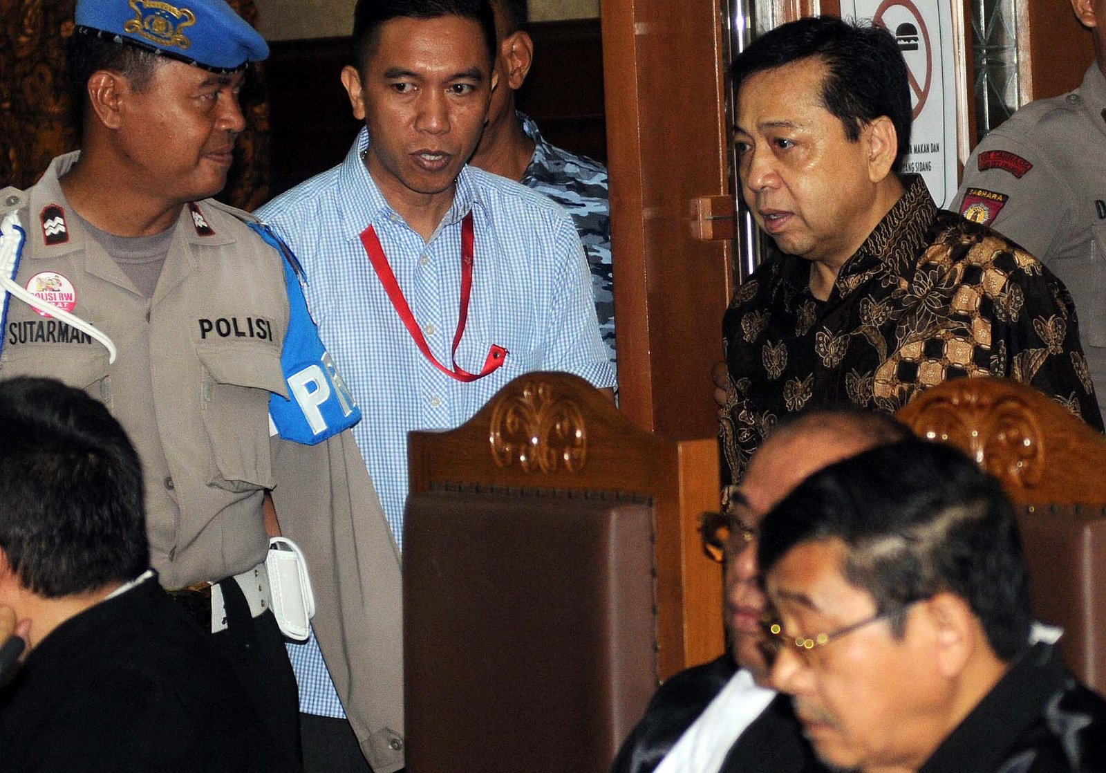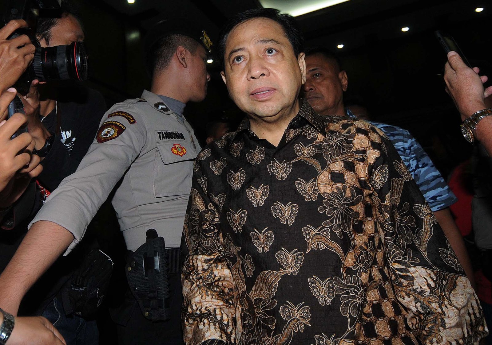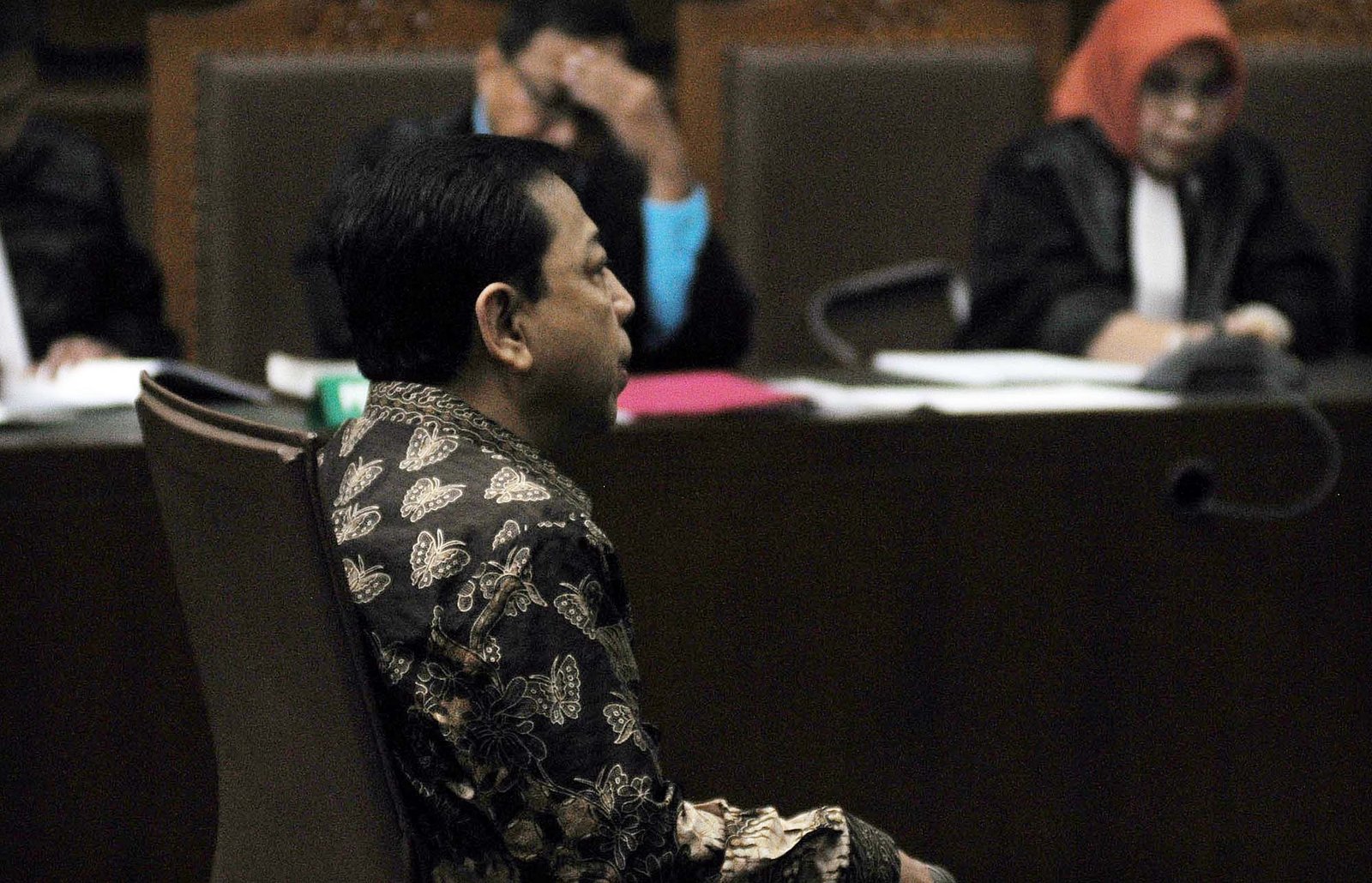 Terdakwa kasus dugaan korupsi proyek e-KTP Setya Novanto saat sidang pembacaan putusan sela di Pengadilan Tipikor, Kemayoran, Jakarta Pusat, Kamis (4/1). Majelis hakim Pengadilan Tipikor menolak seluruh eksepsi atau nota keberatan yang diajukan terdakwa kasus dugaan korupsi proyek e-KTP Setya Novanto dan memerintahkan Jaksa KPK melanjutkan pemeriksaan atas perkara yang menyebabkan kerugian negara Rp 2,3 triliun dari total nilai proyek Rp 5,9 triliun.(Bisnis Jakarta/ADE)
