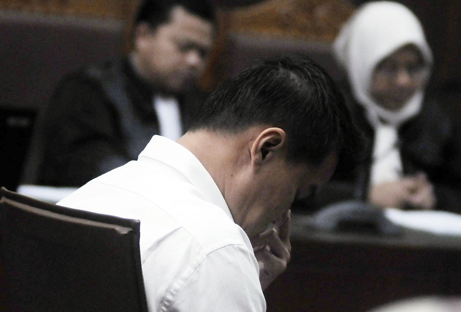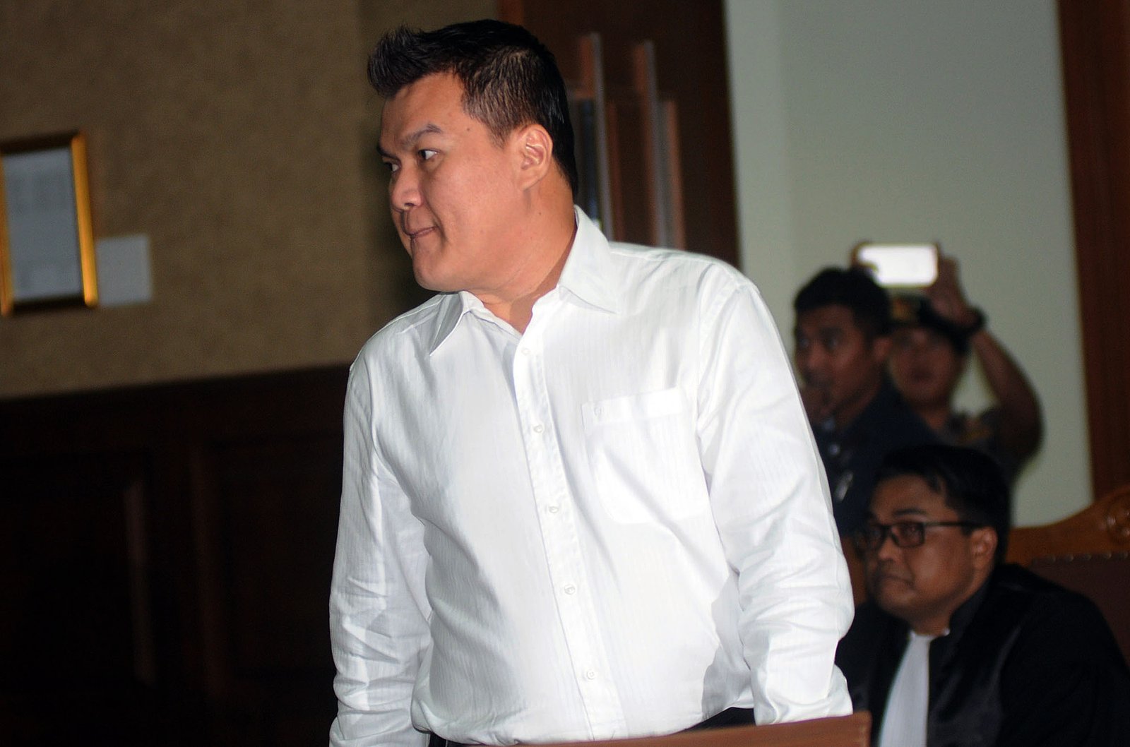 Terdakwa kasus korupsi proyek pengadaan kartu tanda penduduk berbasis elektronik atau e-KTP, Andi Agustinus alias Andi Narogong saat menjalani sidang putusan di Pengadilan Tipikor, Kemayoran, Jakarta Pusat, Kamis (21/12).(Bisnis Jakarta/ADE)