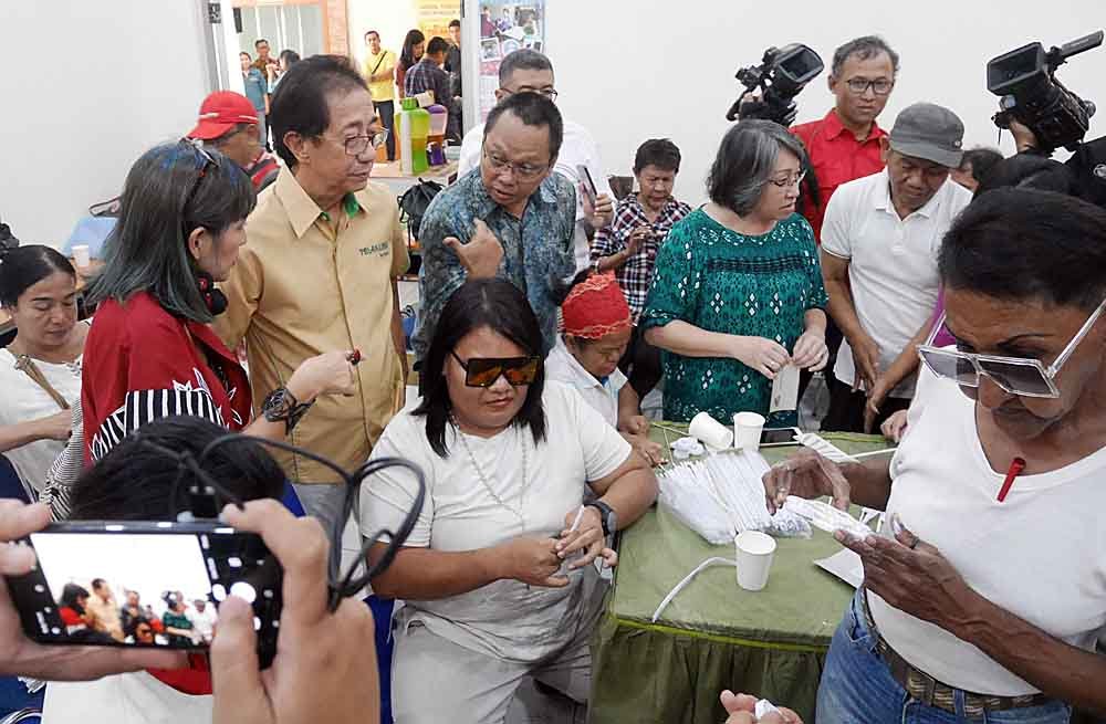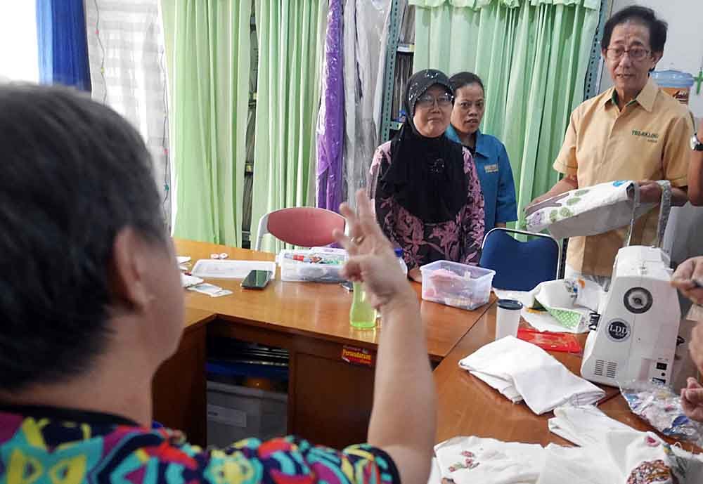 Direktur Sido Muncul Irwan Hidayat saat berinteraksi dengan penyandang disabilitas dan para waria binaan Yayasan Lembaga Daya Dharma-Keuskupan Agung Jakarta (LDD-KAJ), Gedung LDD, Katedral, Jakarta Pusat. PT Industri Jamu dan Farmasi Sido Muncul, Tbk memberikan sumbangan sebesar Rp 150 juta kepada Yayasan Lembaga Daya Dharma-Keuskupan Agung Jakarta (LDD-KAJ). Sumbangan itu diberikan untuk pelatihan keterampilan bagi waria binaan.