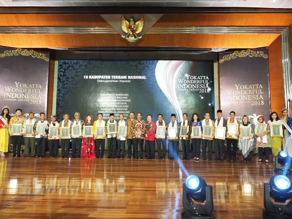Pada Penganugerahan Yokatta Wonderful Indonesia Tourism Awards 2018 semalam, ditetapkan 10 Kabupaten terbaik, yaitu Kabupaten Badung, Kabupaten Sleman, Kabupaten Banyuwangi, Kabupaten Bogor, Kabupaten Buleleng, Kabupaten Gianyar, Kabupaten Klungkung, Kabupaten Bantul, Kabupaten Sidoarjo, dan Kabupaten Bandung.