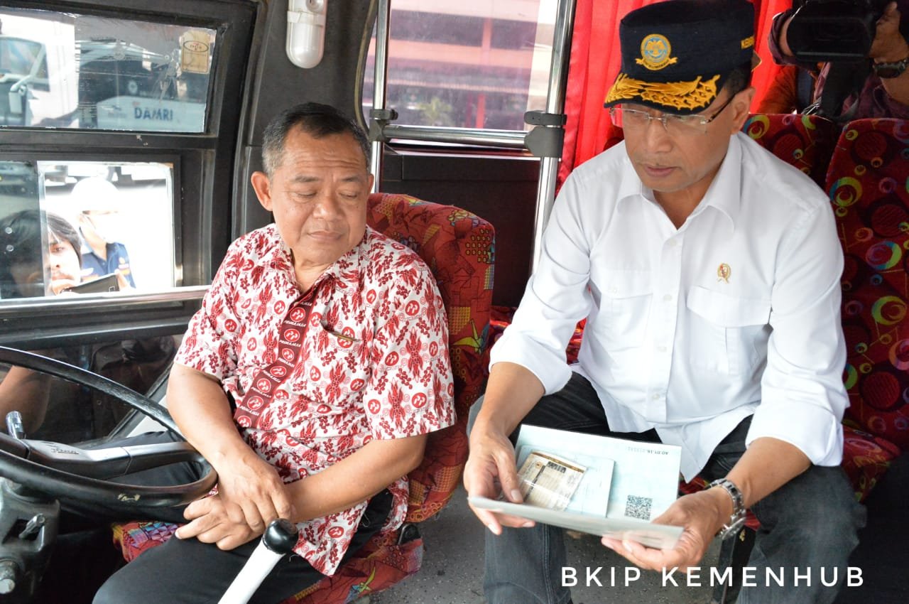 Menteri Perhubungan Budi Karya Sumadi dan Menteri Kesehatan Nila Moeloek meninjau pelaksanaan angkutan lebaran di Terminal Kampung Rambutan, Minggu (26/5). Rombongan menuju terminal Kampung Rambutan menggunakan bus Damri JR Connexion usai bertolak dari Bandara Soekarno Hatta (Soetta). "Kita sudah keliling Terminal Kampung rambutan, dari Bandara Soekarno Hatta tadi kita naik bus. Busnya bagus, mengapa saya naik bus Damri bersama Menkes, karena kita ingin bus-bus itu bagus semua. Kalau bus itu bagus masyarakat banyak yang menggunakan bus untuk angkutan massal. Kita selalu mengupayakan pengguna angkutan massal itu meningkat,” buka Menhub.