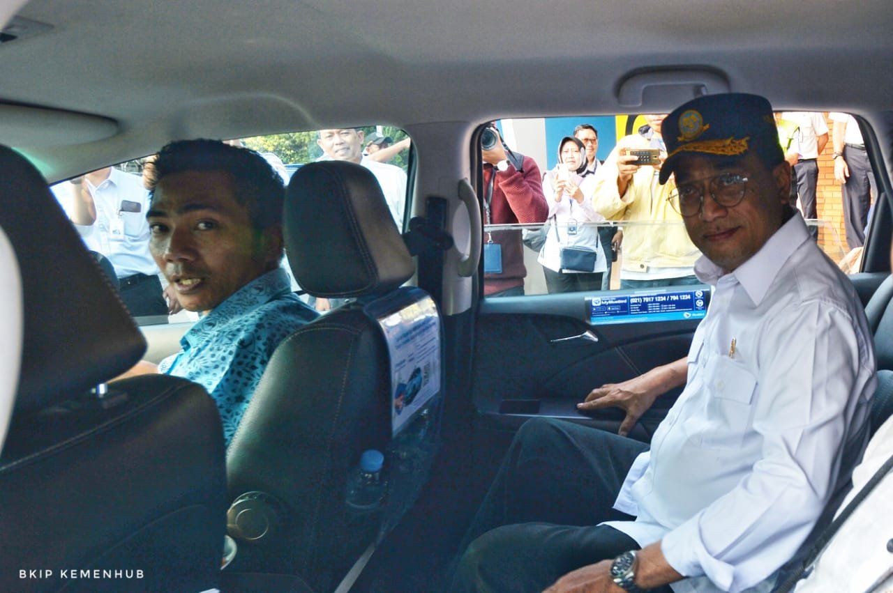 Menhub Budi Karya Sumadi menjajal taksi listrik Bluebird menunju Jakarta. "Kendaraan ini convenient sekali. Tidak ada suara dan saya tadi sengaja kecepatannya sampai 100 km/jam itu stabil. Tadi saya sempat berbincang dengan pengendara taksi katanya pendapatan per hari meningkat dari Rp. 300 ribu menjadi Rp.450 ribu," demikian disampaikan Menhub di Jakarta, Minggu (8/9).