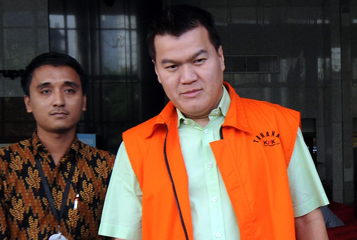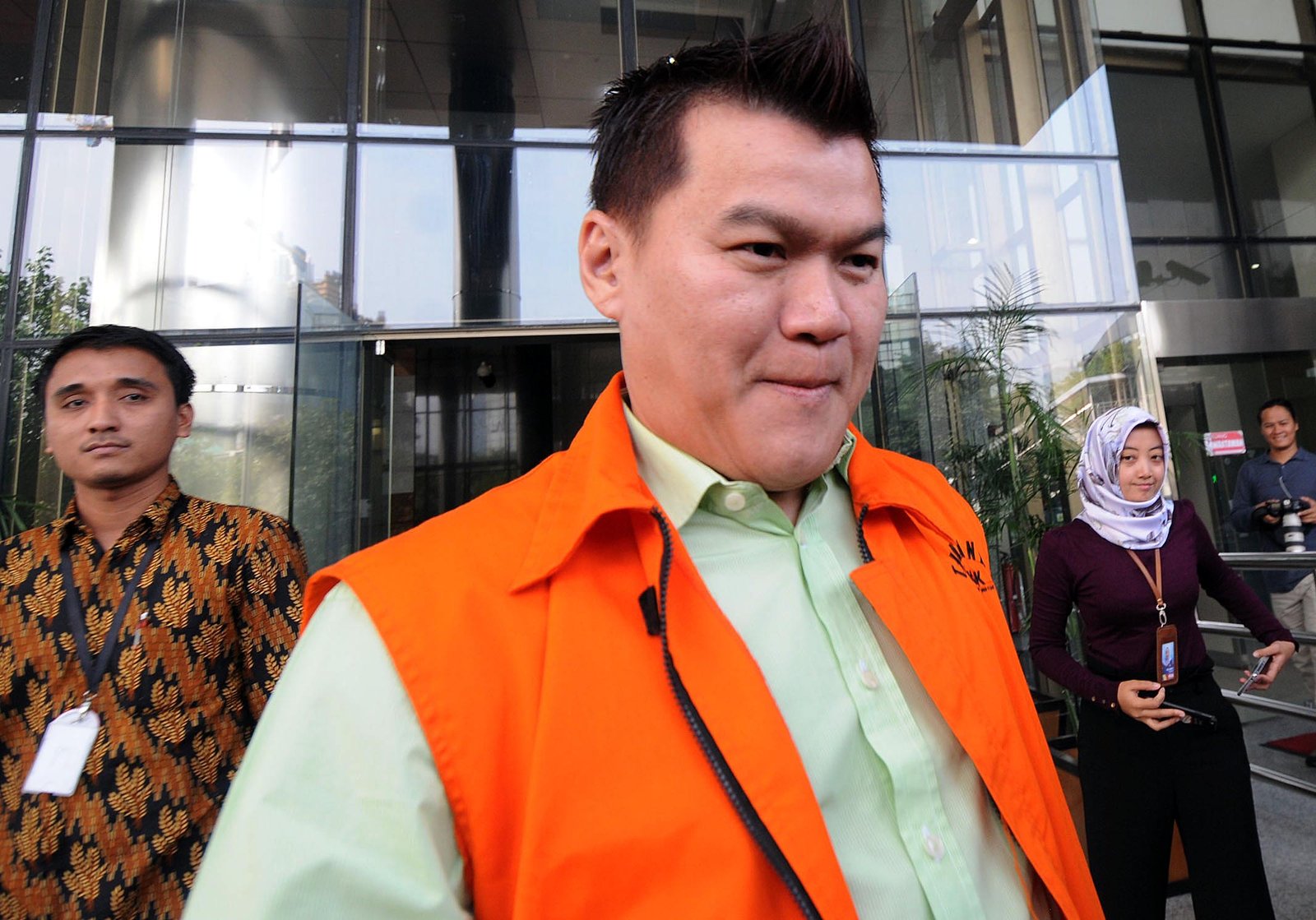 Terpidana kasus suap proyek e-KTP Andi Agustinus alias Andi Narogong usai menjalani pemeriksaan penyidik Komisi Pemberantasan Korupsi (KPK) di Kuningan, Jakarta Selatan, Jumat (29/6/18). Andi Narogong diperiksa sebagai saksi untuk dua tersangka Irvanto Hendra Pambudi Cahyo dan mantan bos PT. Gunung Agung, Made Oka Masagung terkait kasus dugaan korupsi proyek e-KTP.(Bisnis Jakarta/ADE)