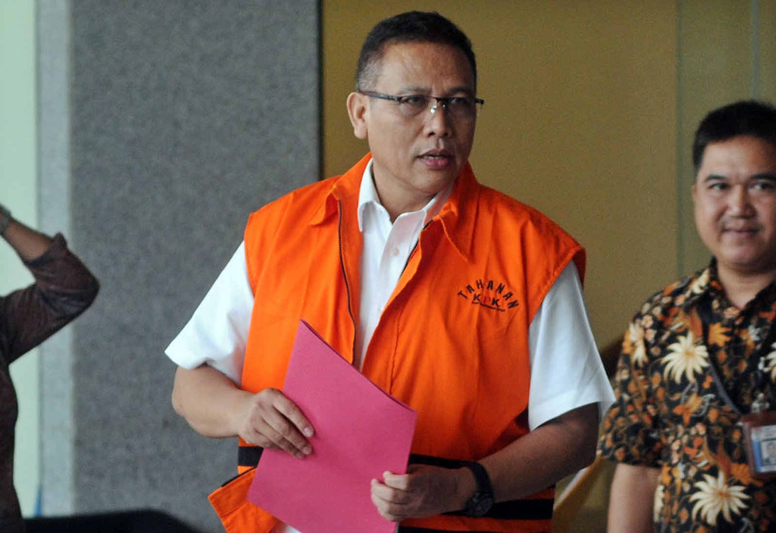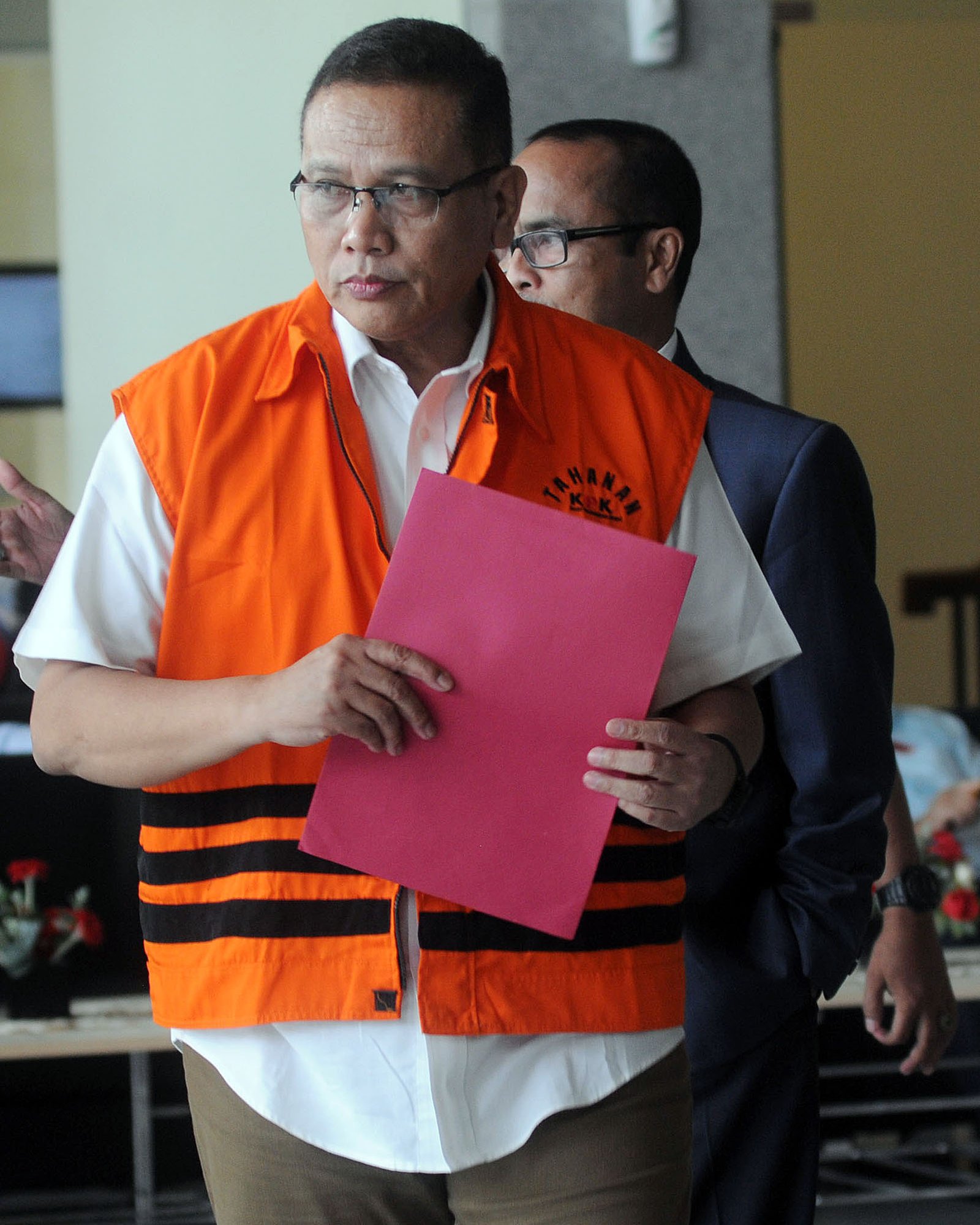 Tersangka mantan Kepala Pusat Data dan Sistem Informasi Sekretariat Jenderal Kementerian Dalam Negeri, Dudy Jocom usai menjalani pemeriksaan penyidik Komisi Pemberantasan Korupsi (KPK) di Kuningan, Jakarta Selatan, Kamis (21/6/18). Dudy Jocom akan menjalani persidangan usai menandatangani berkas perkara yang telah P21 atau selesai pada tahap penyidikan terkait dugaan korupsi pembangunan gedung IPDN di Kabupaten Agam, Sumatera Barat pada Kementerian Dalam Negeri tahun anggaran 2011.(Bisnis Jakarta/ADE)
