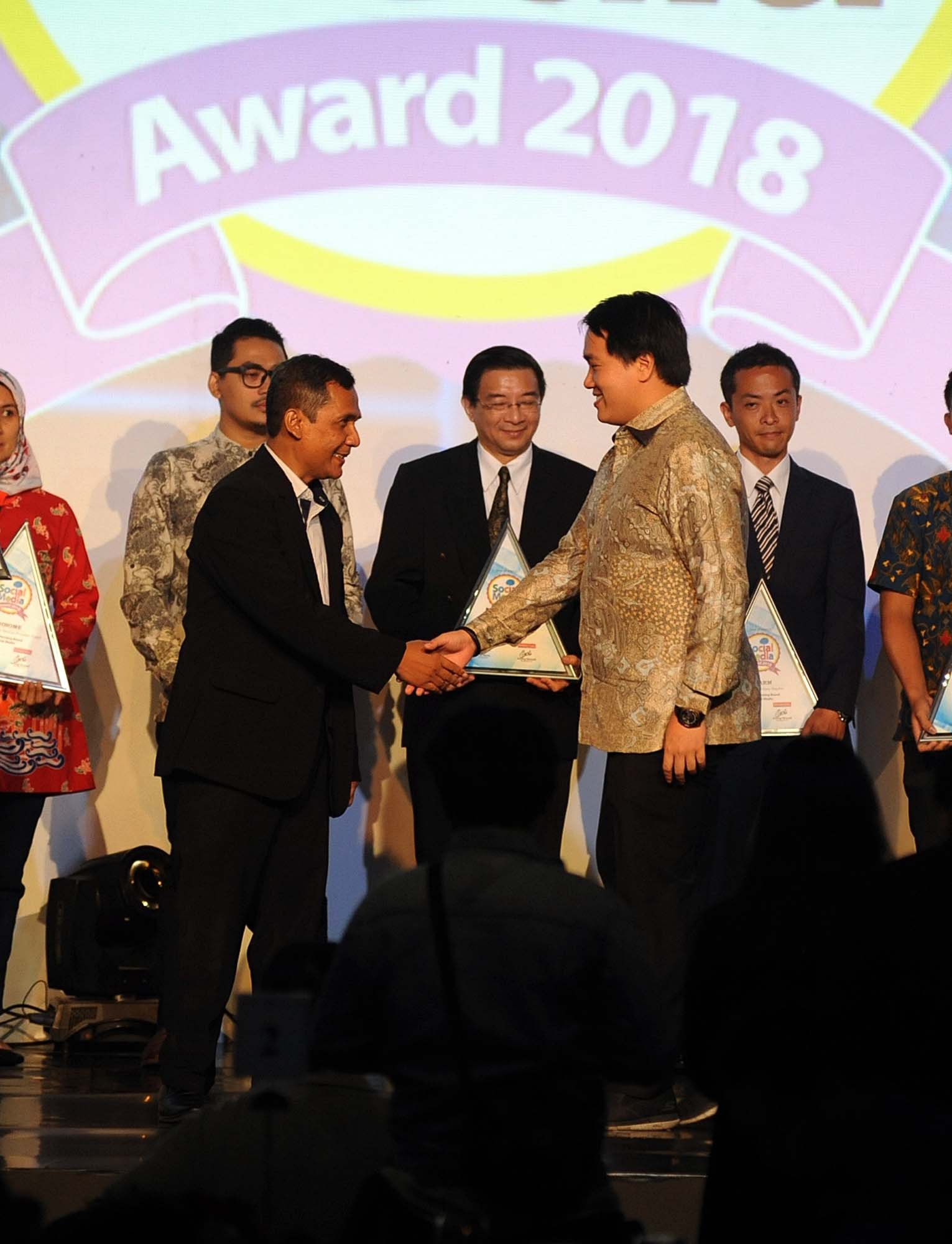 Manager Sido Muncul Marco Jonathan Hidayat saat menerima penghargaan Social Media Award 2018 di Jakarta, Selasa (25/9/18). Tolak Angin kembali menerima penghargaan Social Media Award 2018 untuk kategori “Herbal Medicine Against Cold”. Social Media Award merupakan perhargaan kepada perusahaan-perusahaan yang memiliki sentimen sekaligus share of voice yang baik di media sosial.