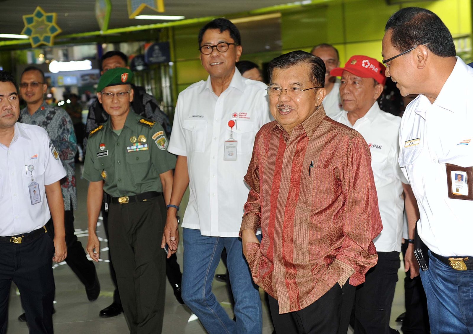 Wapres Jusuf Kalla saat meninjau Stasiun Gambir, Jakarta Pusat, Kamis (7/6/18) sebelum melepas relawan PMI dan Kementerian Perhubungan dalam menghadapi mudik Lebaran 2018.(Bisnis Jakarta/ADE)