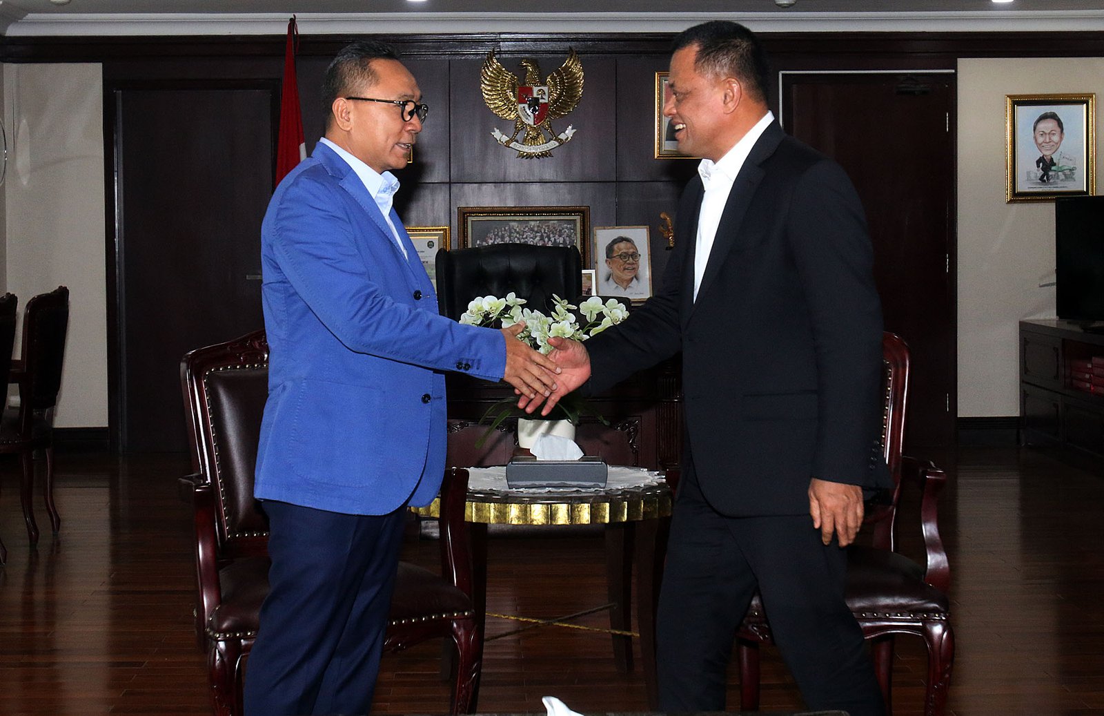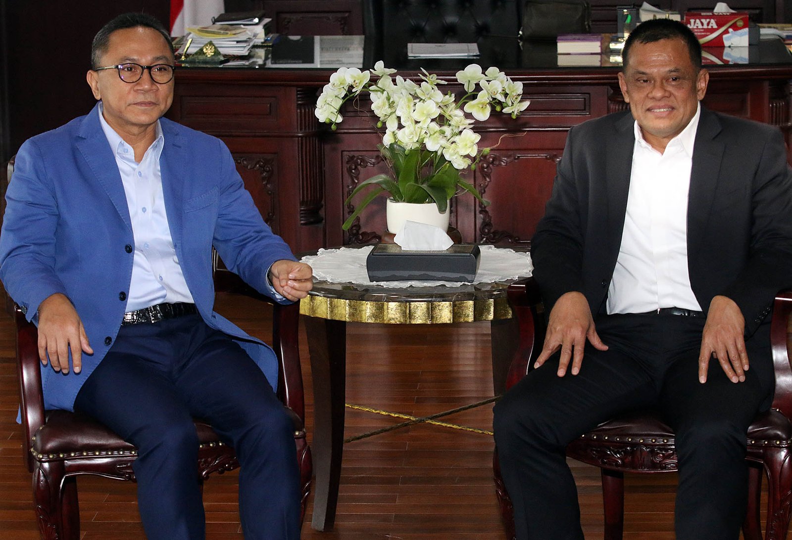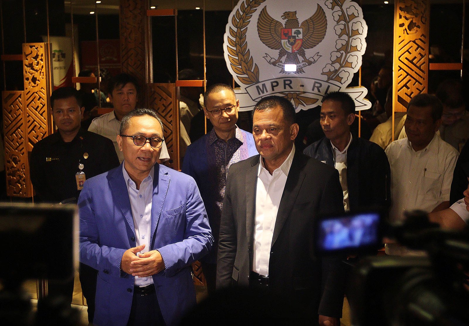 Mantan Panglima TNI Jenderal (Purn) Gatot Nurmantyo (kanan) bertemu dengan Ketua Umum Partai Amanat Nasional (PAN) yang juga sebagai Ketua MPR Zulkifli Hasan di Jakarta, Selasa (8/5/18). Pertemuan kedua tokoh tersebut membahas berbagai hal yang berkaitan dengan kondisi politik terkini. (Bisnis Jakarta/ADE)